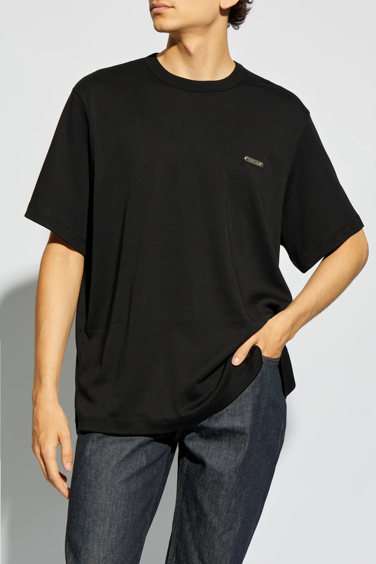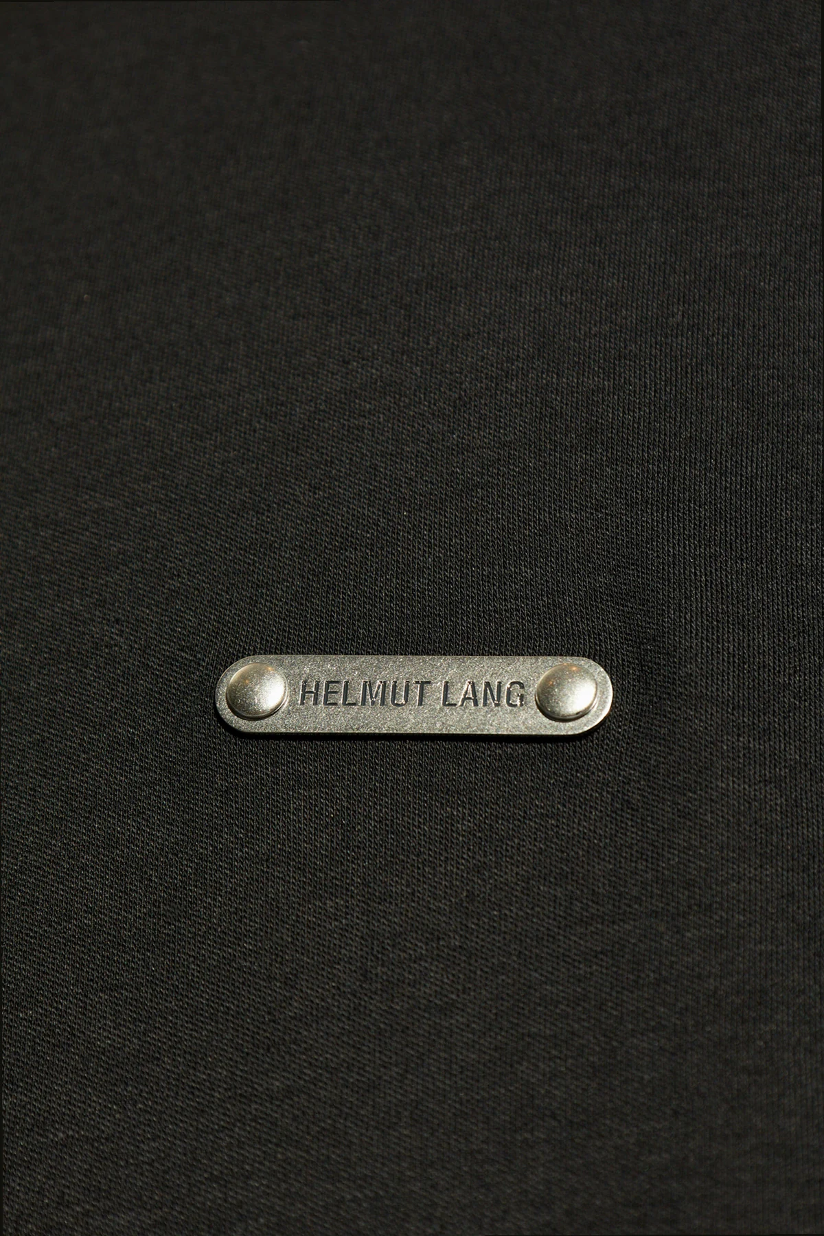 Metaliczna aplikacja z logo Helmut Lang dodaje ekskluzywnego charakteru i rozpoznawalności.