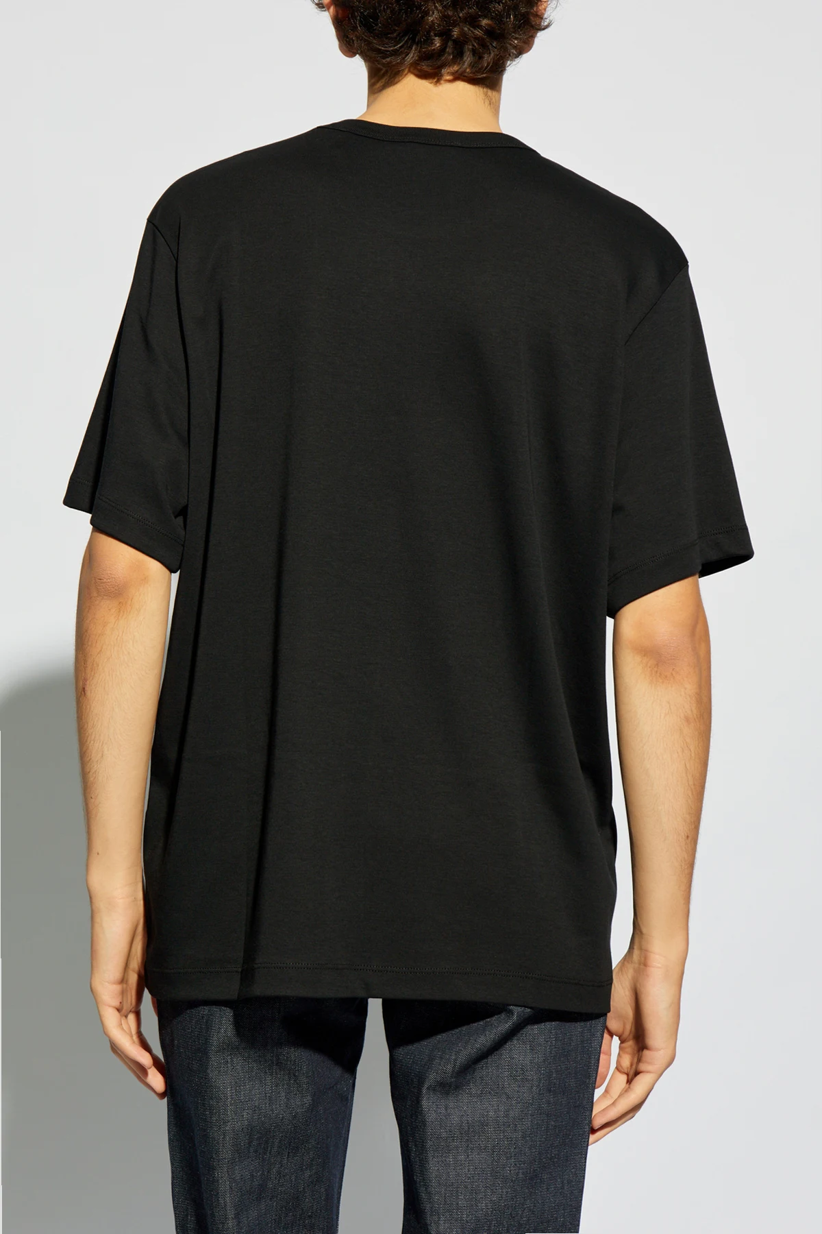 Prezentujemy Państwu wyrafinowany T-shirt z aplikacją z logo od prestiżowego projektanta Helmut Lang . Jego design opiera się na ponadczasowej elegancji, łącząc klasyczny, prosty krój z subtelnymi, lecz wyrazistymi detalami. Wykonany w całości z najwyższej jakości bawełny, ten czarny T-shirt zapewnia nie tylko niezrównany komfort noszenia, ale także trwałość i odporność na częste użytkowanie.