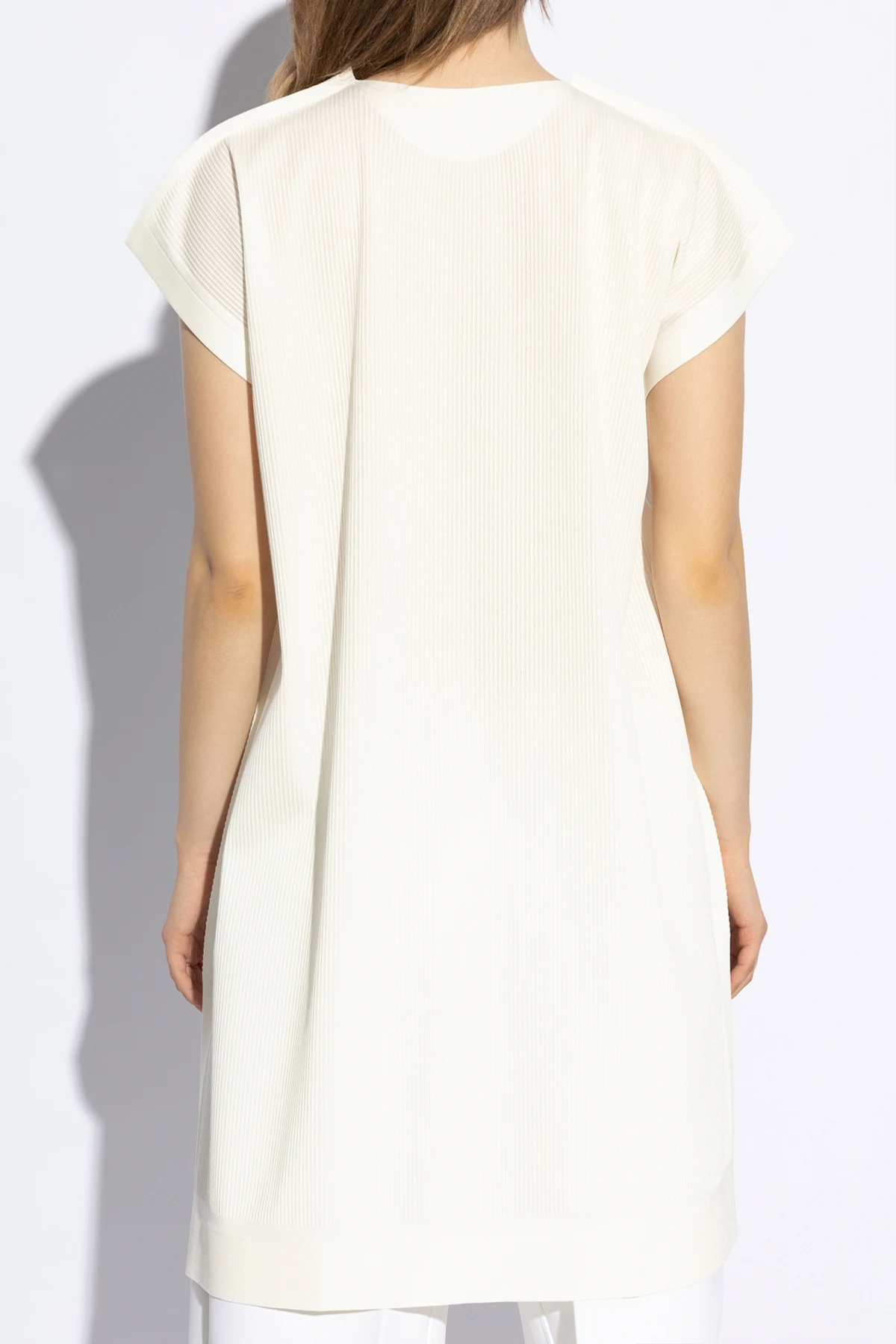Prezentujemy Państwu wykwintną kreację od Issey Miyake w kolekcji Pleats Please - Prążkowaną sukienkę DZWONY , która urzeka swoją prostotą i elegancją. Dominujący kolor biały w połączeniu z subtelnym prążkowaniem tworzy harmonijną całość, oddającą ducha współczesnej klasyki.