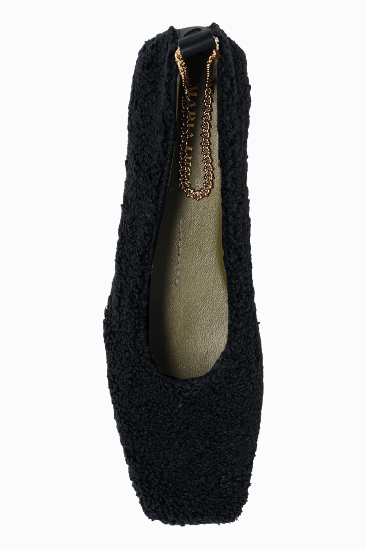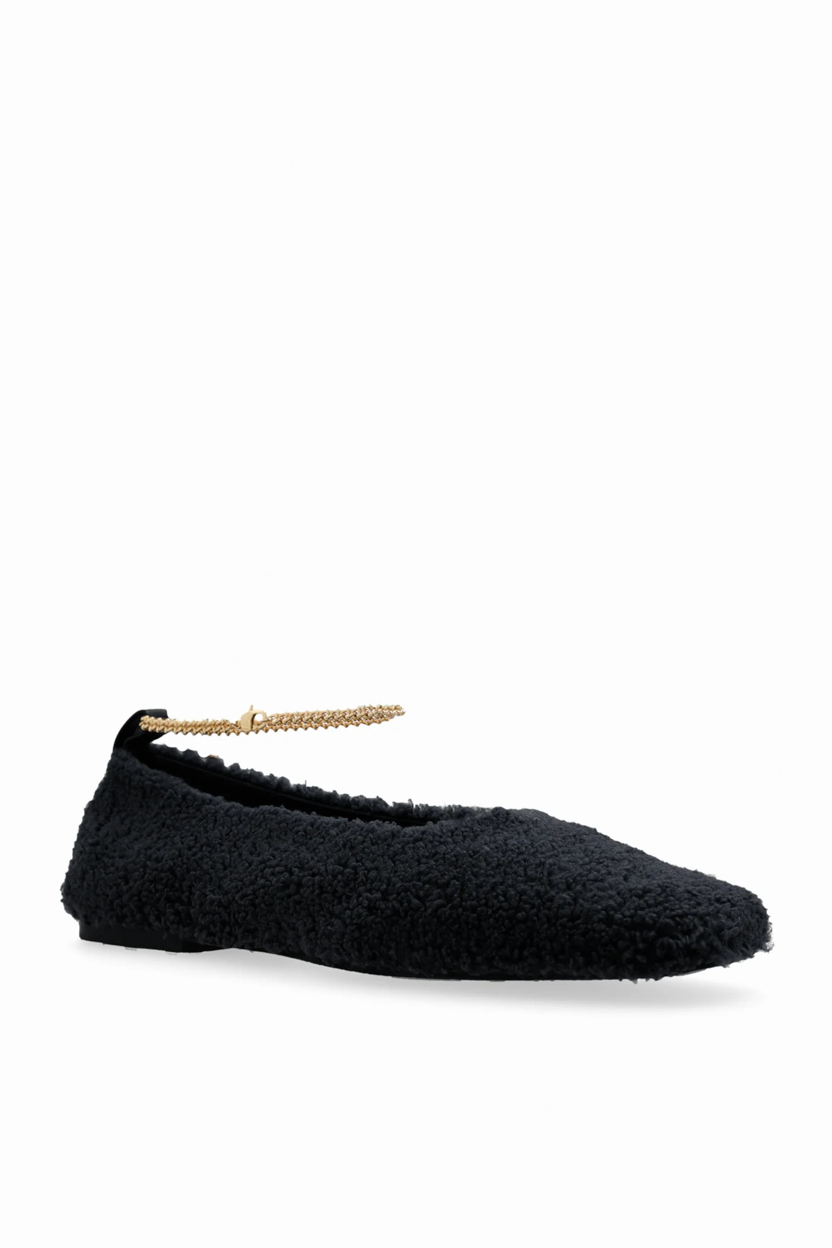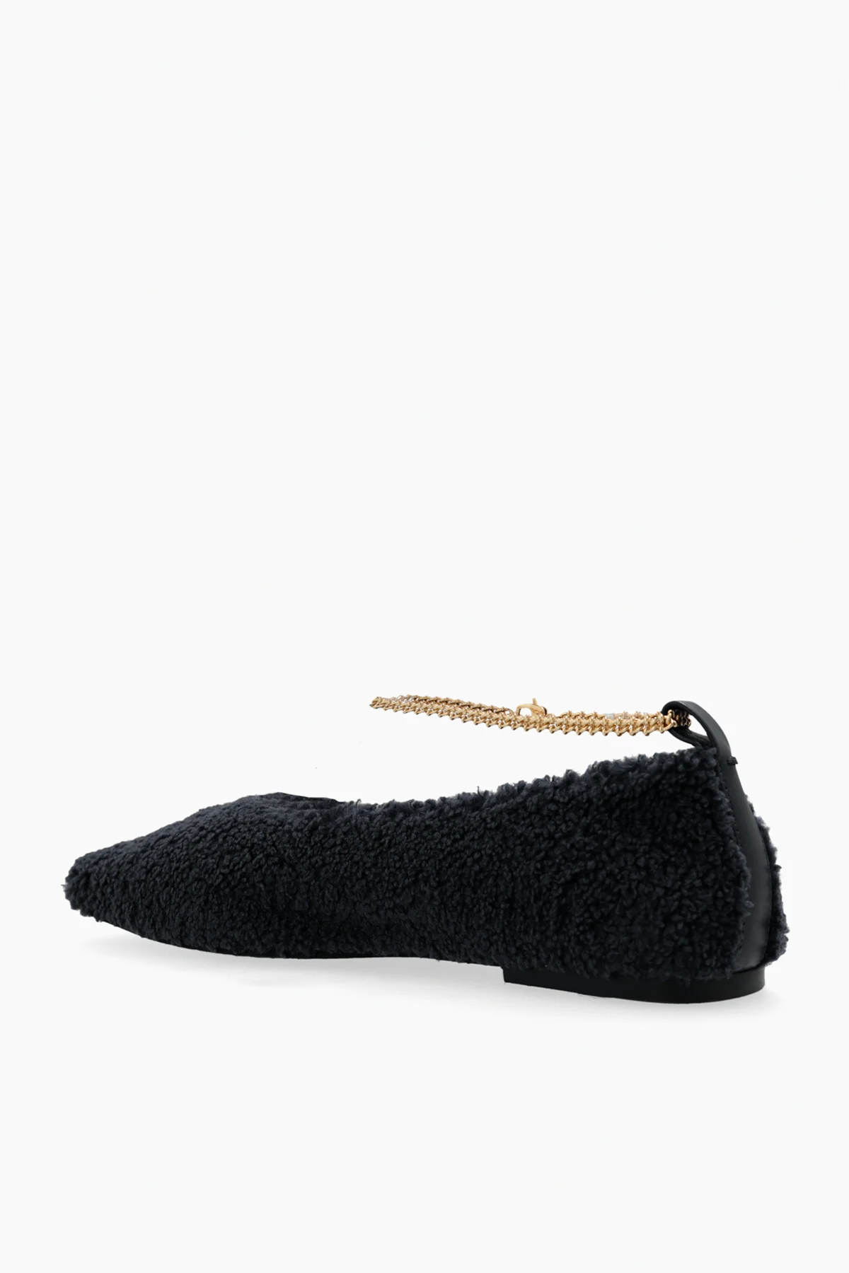 Elegancki design: Teksturowana powierzchnia i złoty łańcuszek nadają balerinom wyrafinowanego charakteru.