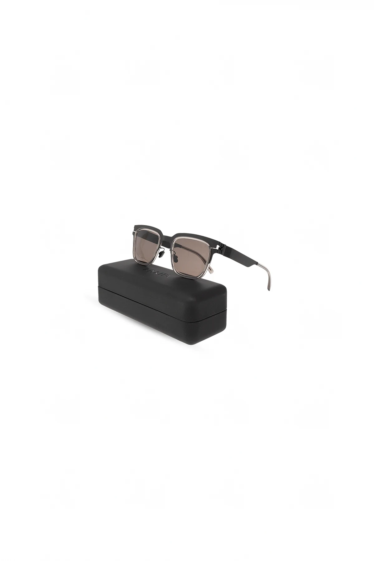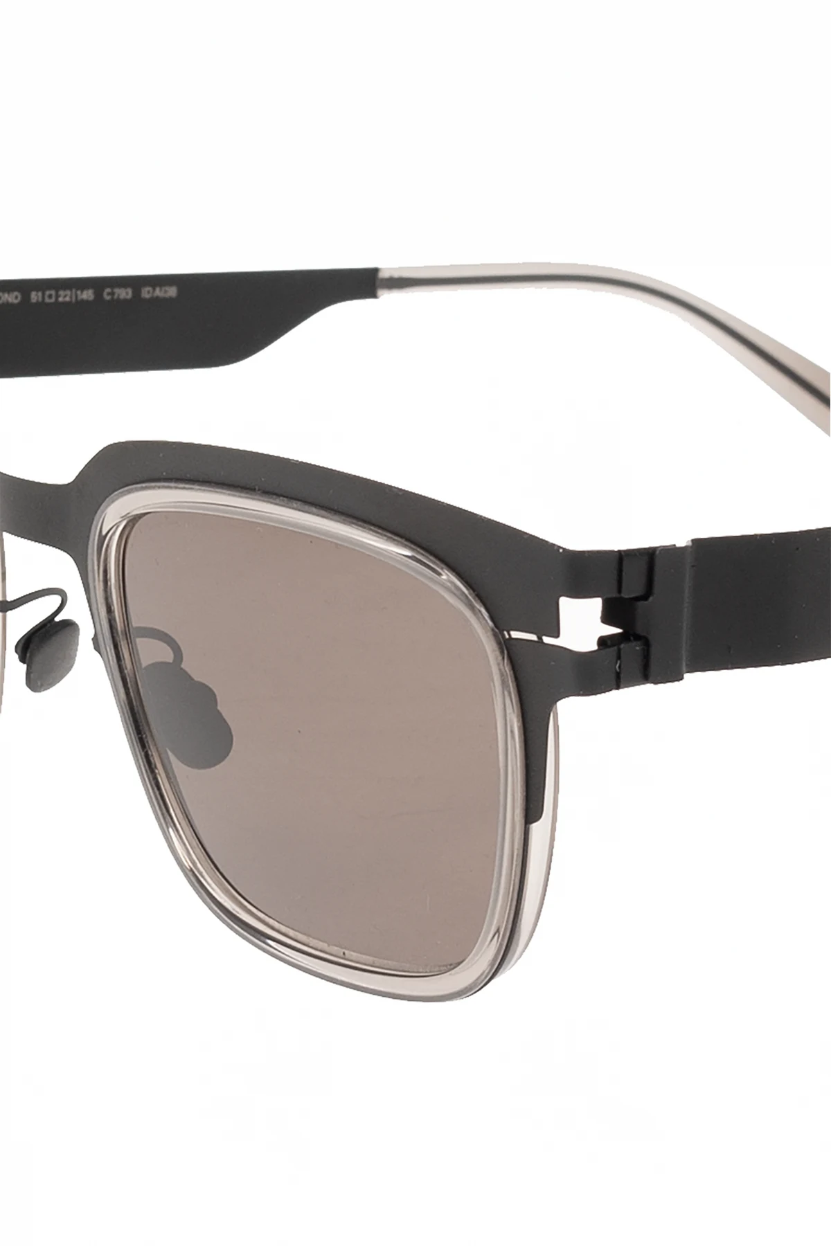 Czarne okulary przeciwsłoneczne, model ‘Raymond’ Mykita, kolekcja ‘MYKITA ACETATE RINGS’. Wykonane z lekkiej stali nierdzewnej i octanu ISCC PLUS. Certyfikowane, brązowe soczewki przeciwsłoneczne ze 100% ochroną przed promieniowaniem UVA/UVB i antyrefleksyjną powłoką wewnętrzną. Wykonane ręcznie w Berlinie. Dołączone etui.