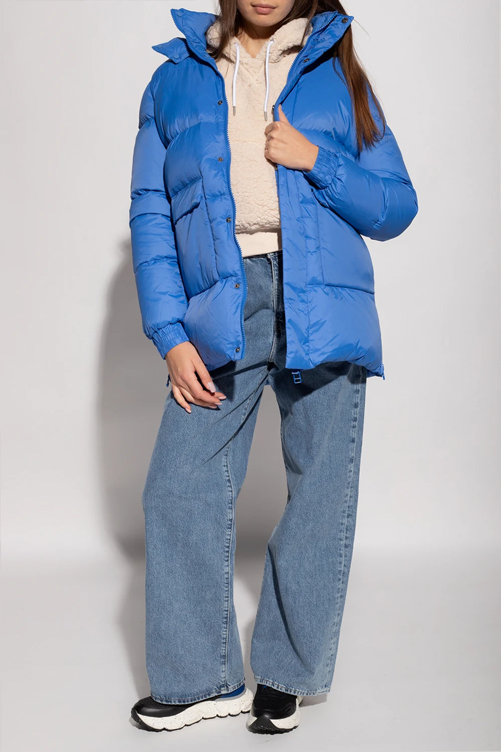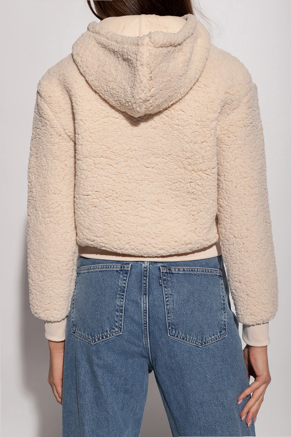 Kremowa bluza Fila. Ozdobiona wyszytym wzorem z logo w kolorze białym. Kaptur ściągany trokami. Dwie wsuwane kieszenie. Dół i długie rękawy wykończone ściągaczem.