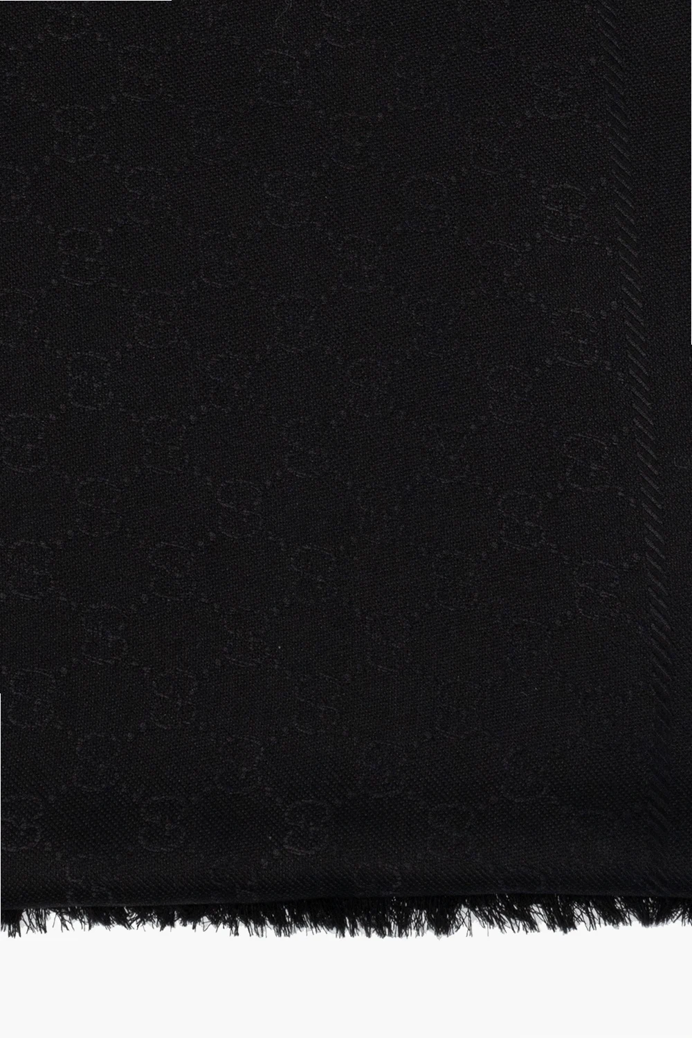 Czarna chusta Gucci ze wzorem 'GG Original'. Wykończona frędzlami.