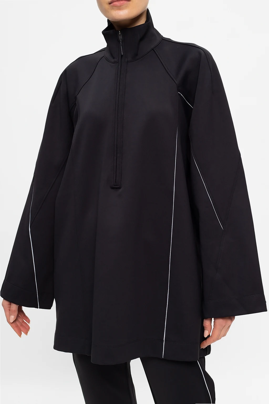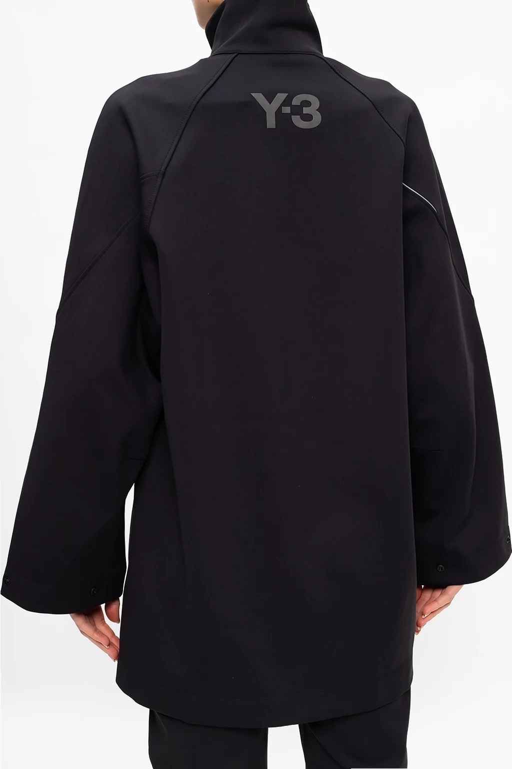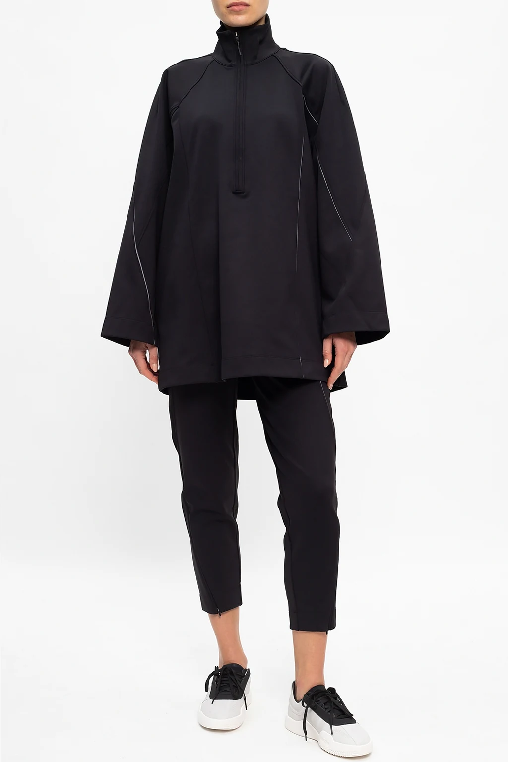 Czarna bluza typu ‘oversize’ Y-3 Yohji Yamamoto. Dekolt zapinany na zamek. Długie rękawy. Materiałowe wykończenie z efektem odblaskowym. Z tyłu nadrukowane logo.