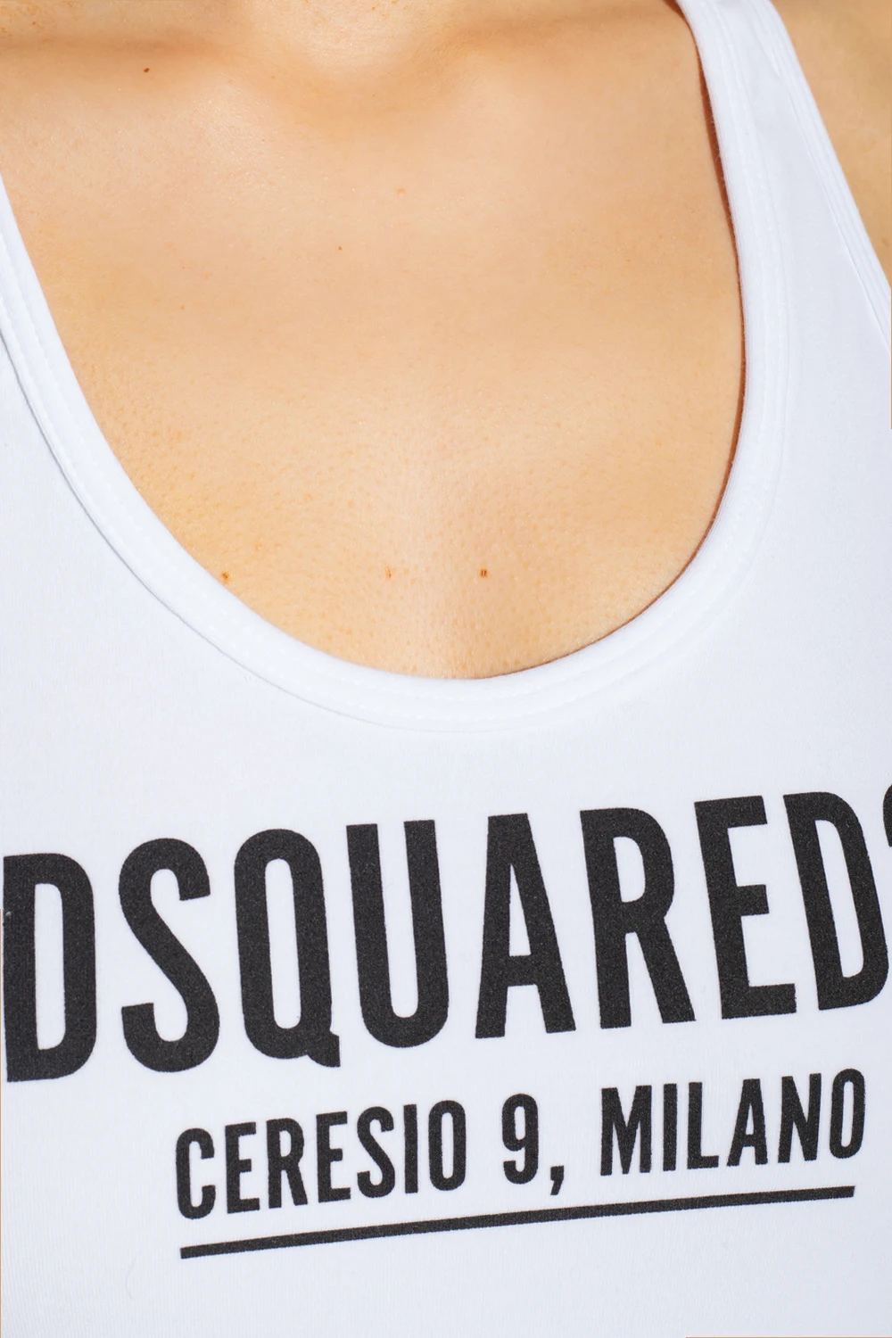Biały top na ramiączkach Dsquared2, kolekcja ‘Underwear’. Wykonany z bawełny. Z przodu ozdobiony nadrukowanym logo w kolorze czarnym. Okrągły dekolt.