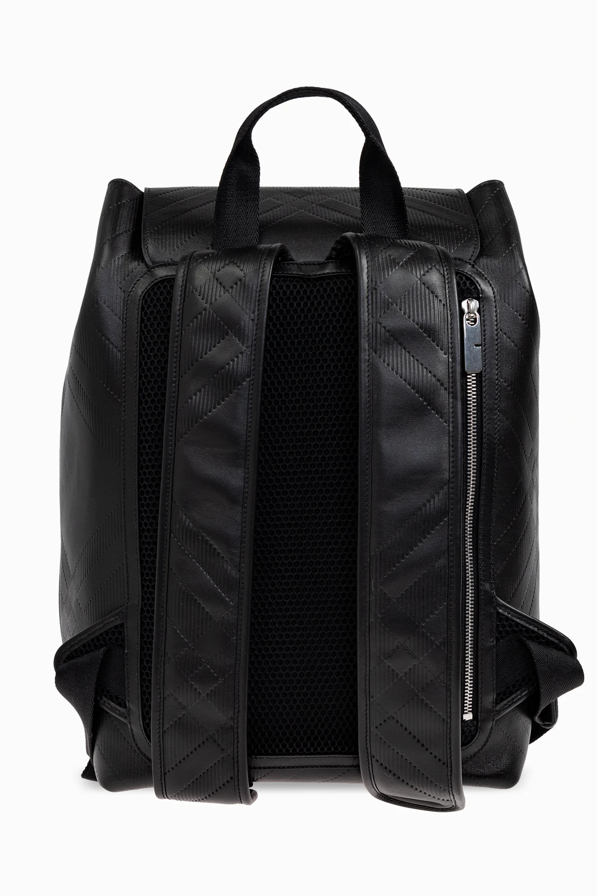 Regulowane skórzane paski zdobione wzorem, jak reszta plecaka, zapewniają komfort noszenia, a zewnętrzna kieszeń zapinana na suwak dodaje mu funkcjonalności.
