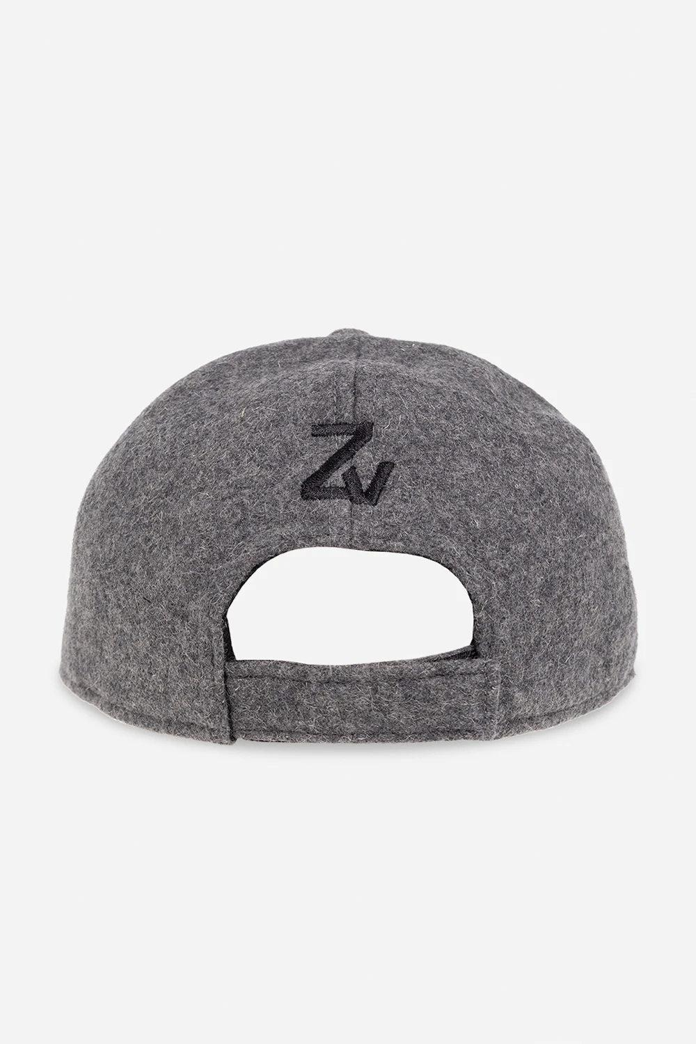 Szara czapka z daszkiem Zadig & Voltaire Kids. Ozdobiona naszytym wzorem w kolorze brązowym. Z tyłu wyhaftowane czarne logo oraz zapięcie na rzep. Wykończona wełną.