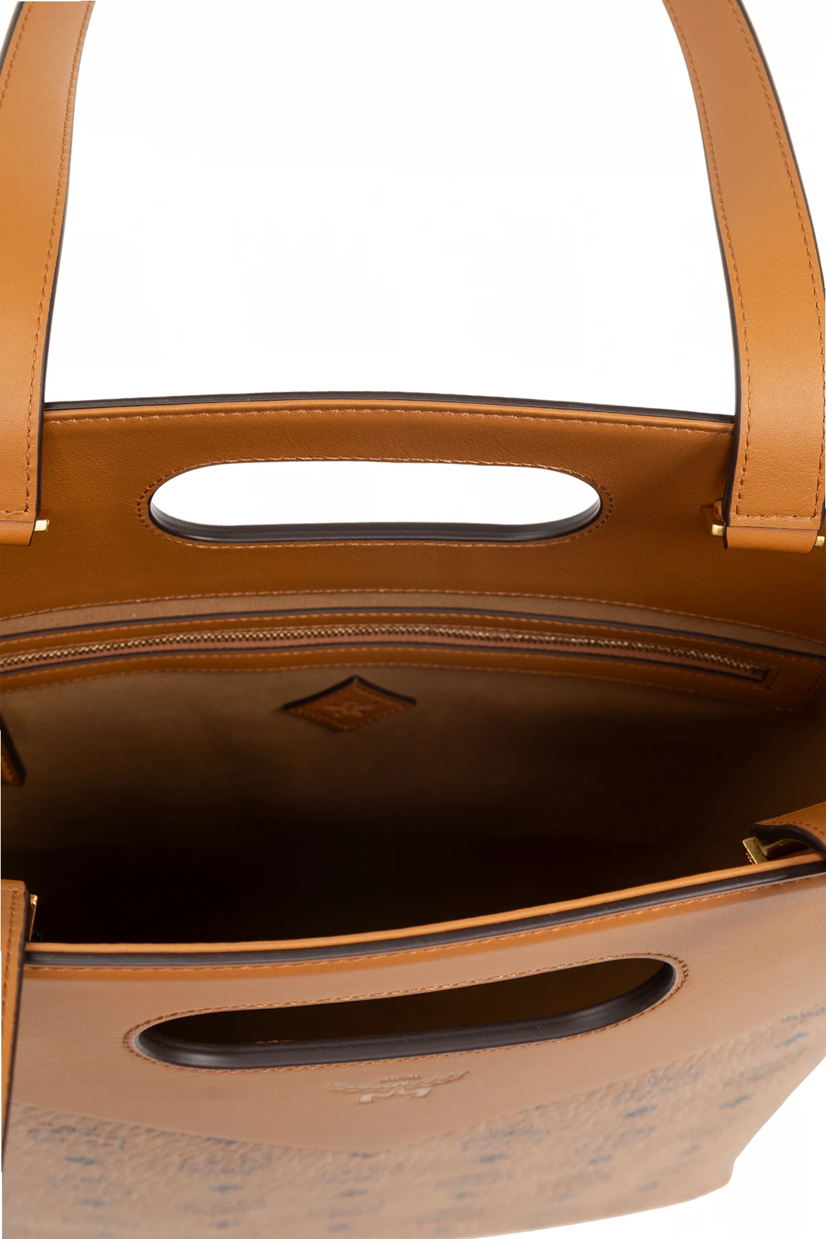 Charakterystyczny dla tego modelu jest powtarzający się wzór `Visetos` , umieszczony z przodu torebki, tuż nad dyskretnie wytłoczonym logo MCM, który dodaje całości rozpoznawalnego charakteru. Dwa długie, płaskie uchwyty umożliwiają wygodne noszenie torebki na ramieniu, a dodatkowy uchwyt w górnej krawędzi oferuje alternatywny sposób trzymania. Niezwykłą uwagę przykuwa wysoka jakość wykonania, widoczna w precyzyjnych szwach i perfekcyjnym wykończeniu krawędzi.