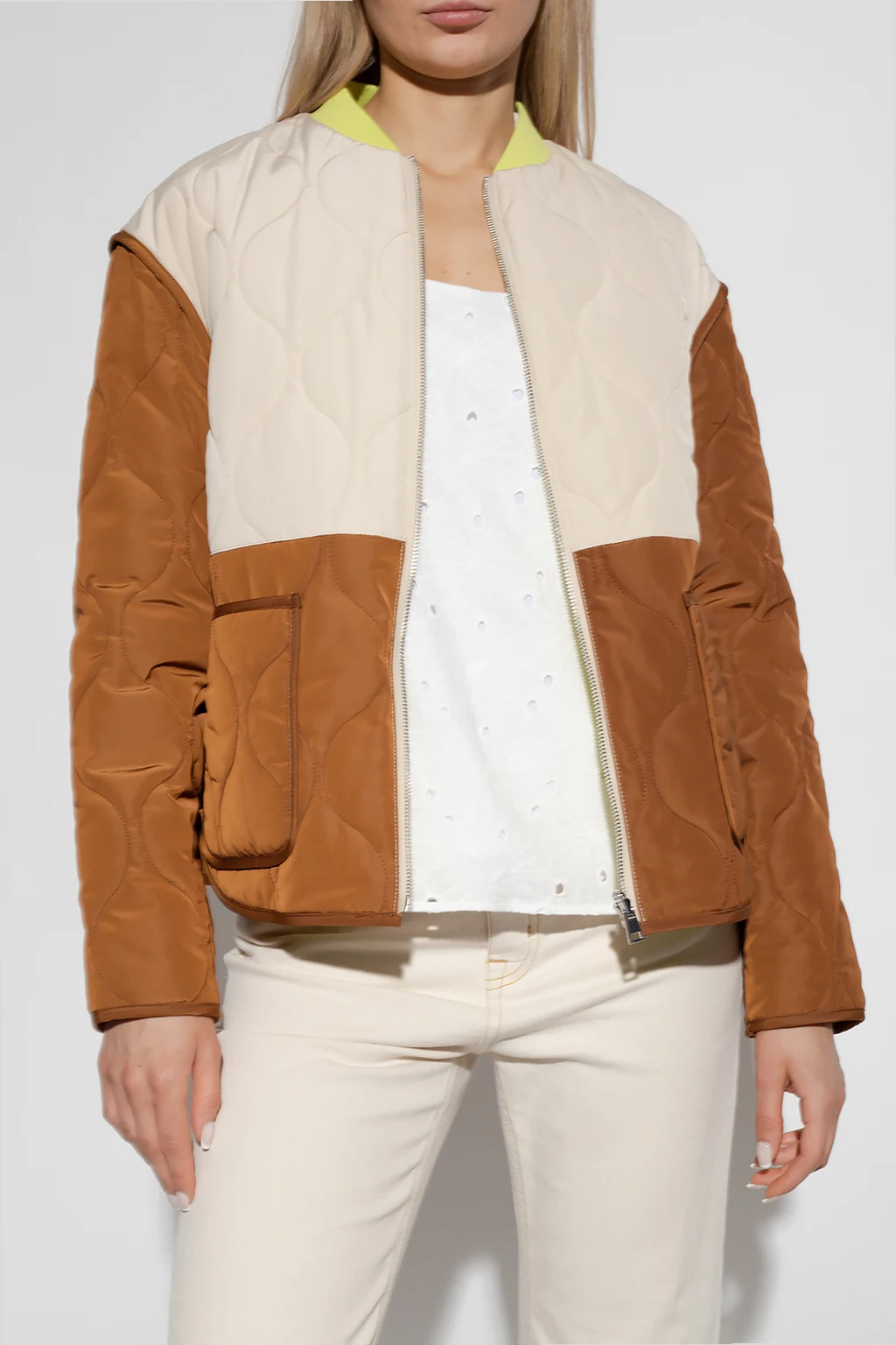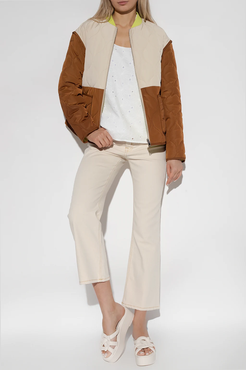 Dwustronna kurtka PS Paul Smith. Zapinana na zamek. Pikowana warstwa zewnętrzna w kolorze kremowo- brązowym. Na przodzie dwie wsuwane kieszenie. Warstwa wewnętrzna w kolorze zielonym z wsuwanymi kieszeniami po bokach.