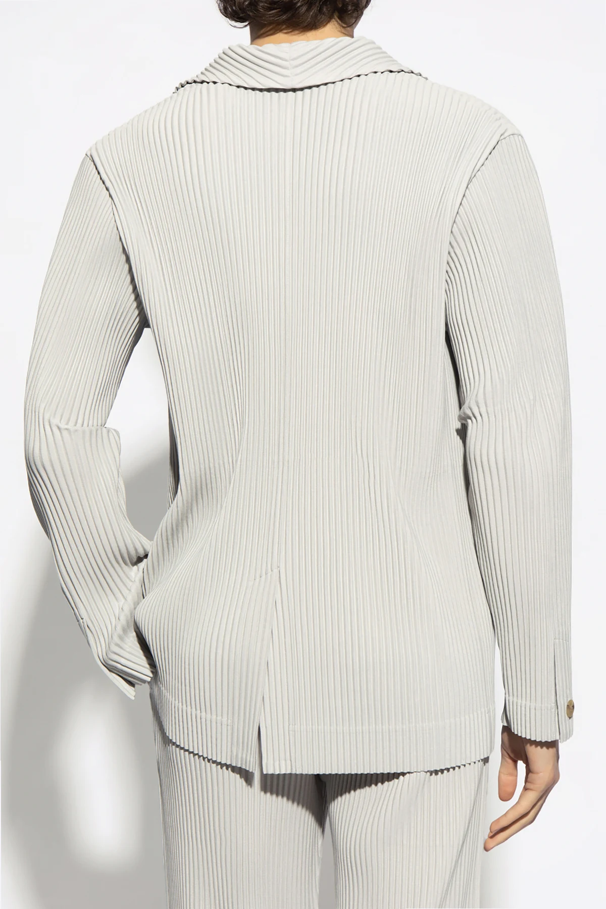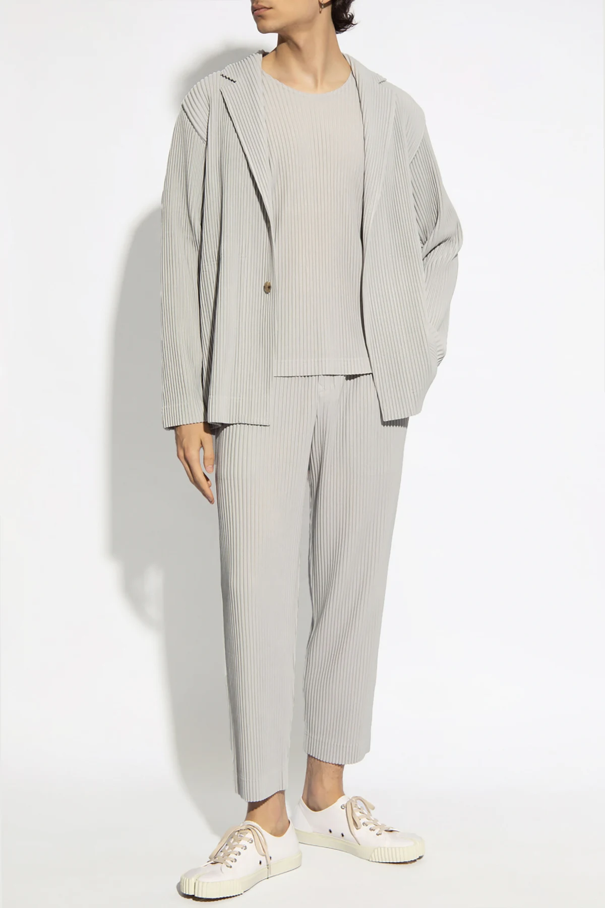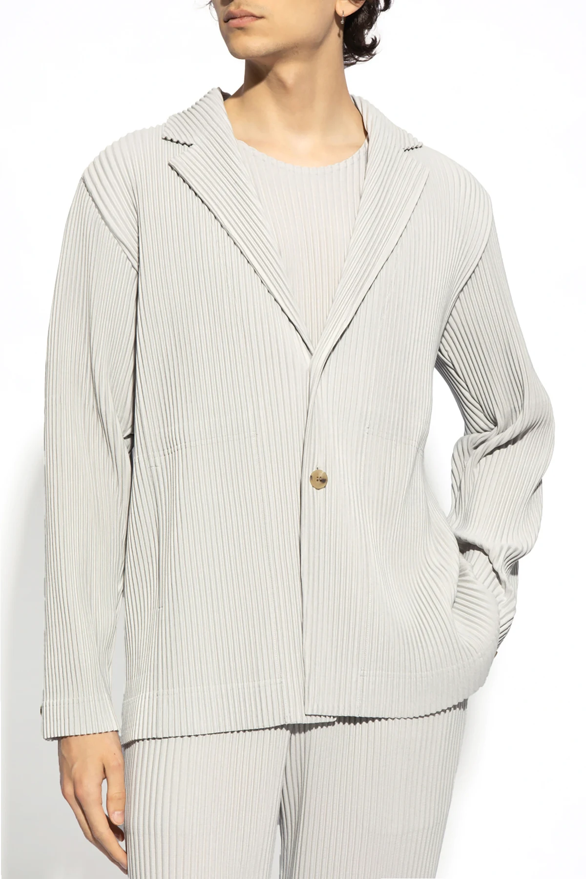 Przedstawiamy Państwu wykwintną plisowaną marynarkę prosto z ekskluzywnej kolekcji Issey Miyake Homme Plisse . Jej subtelną elegancję podkreśla jasnoszary odcień oraz wyrafinowana struktura pionowych plis, nadających całej tkaninie niepowtarzalny charakter. Wykonana z najwyższej jakości 100% poliestru, marynarka ta łączy w sobie klasyczny, jednak nieco luźniejszy krój z nowoczesnym designem.