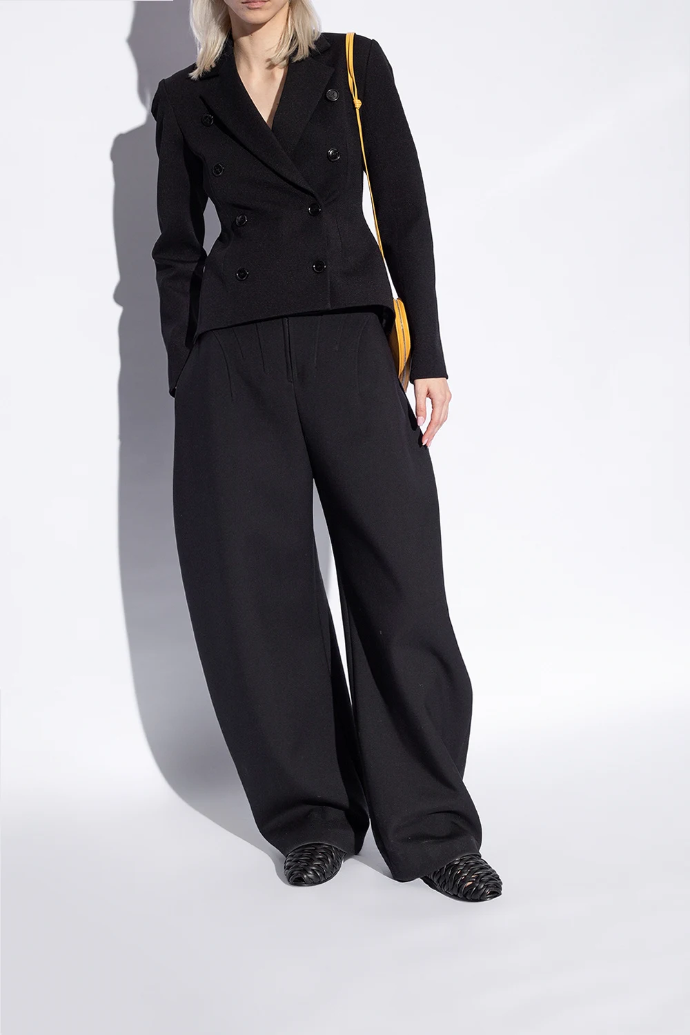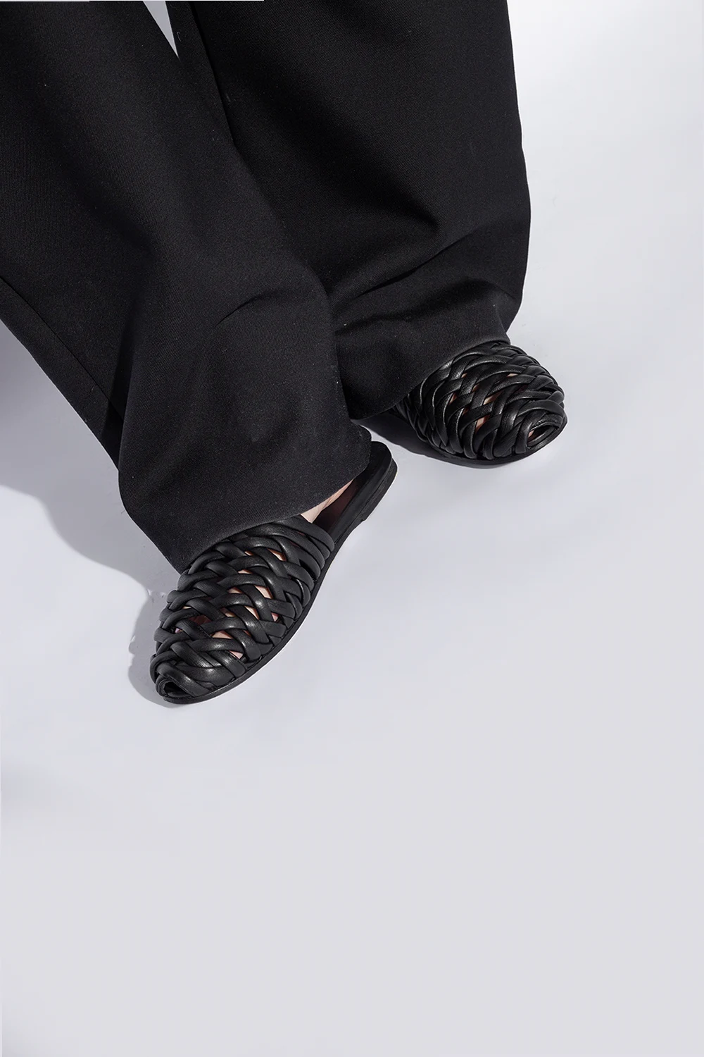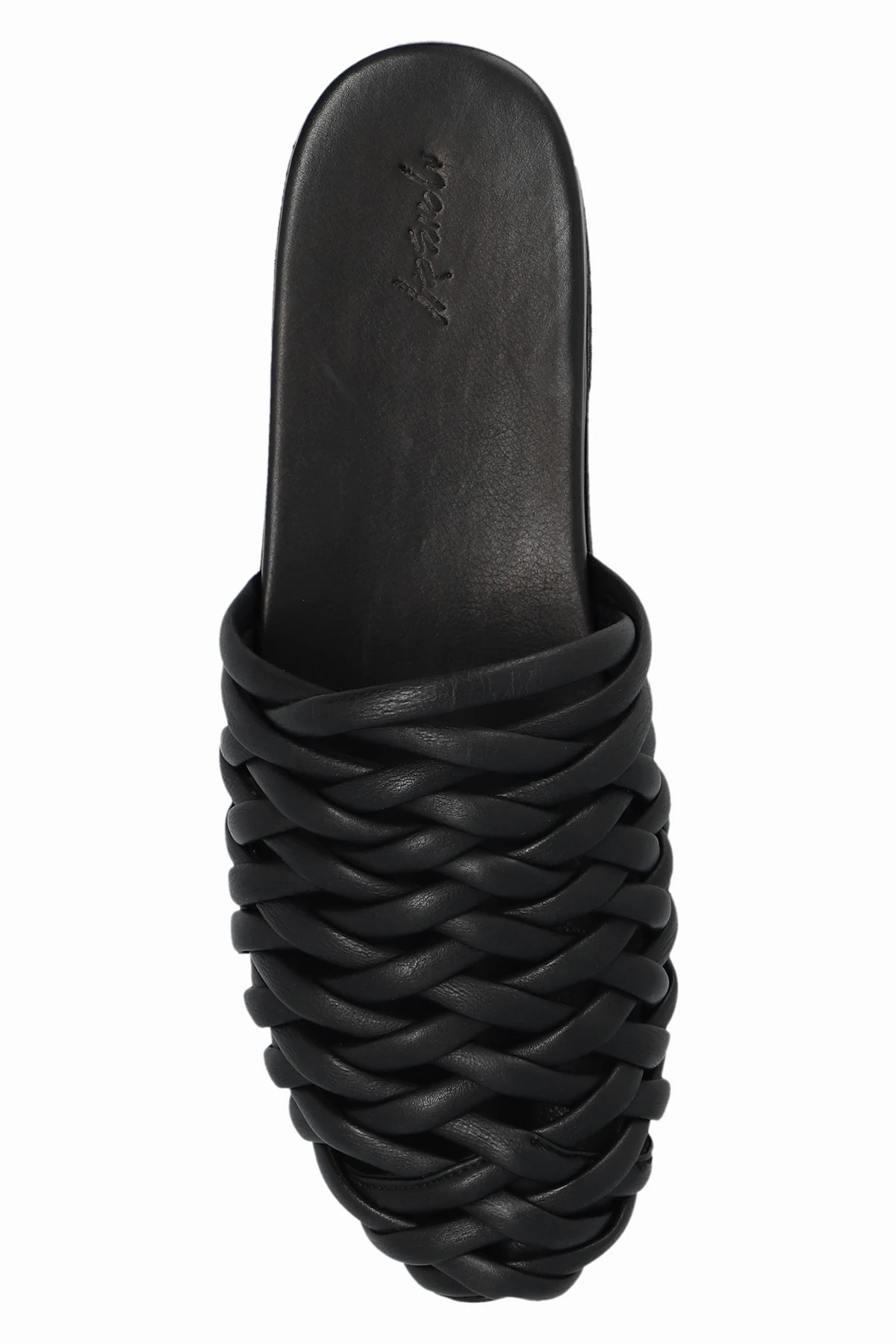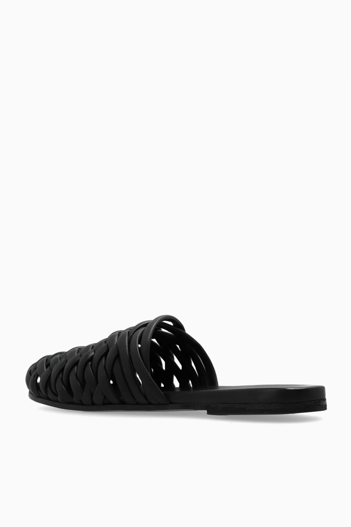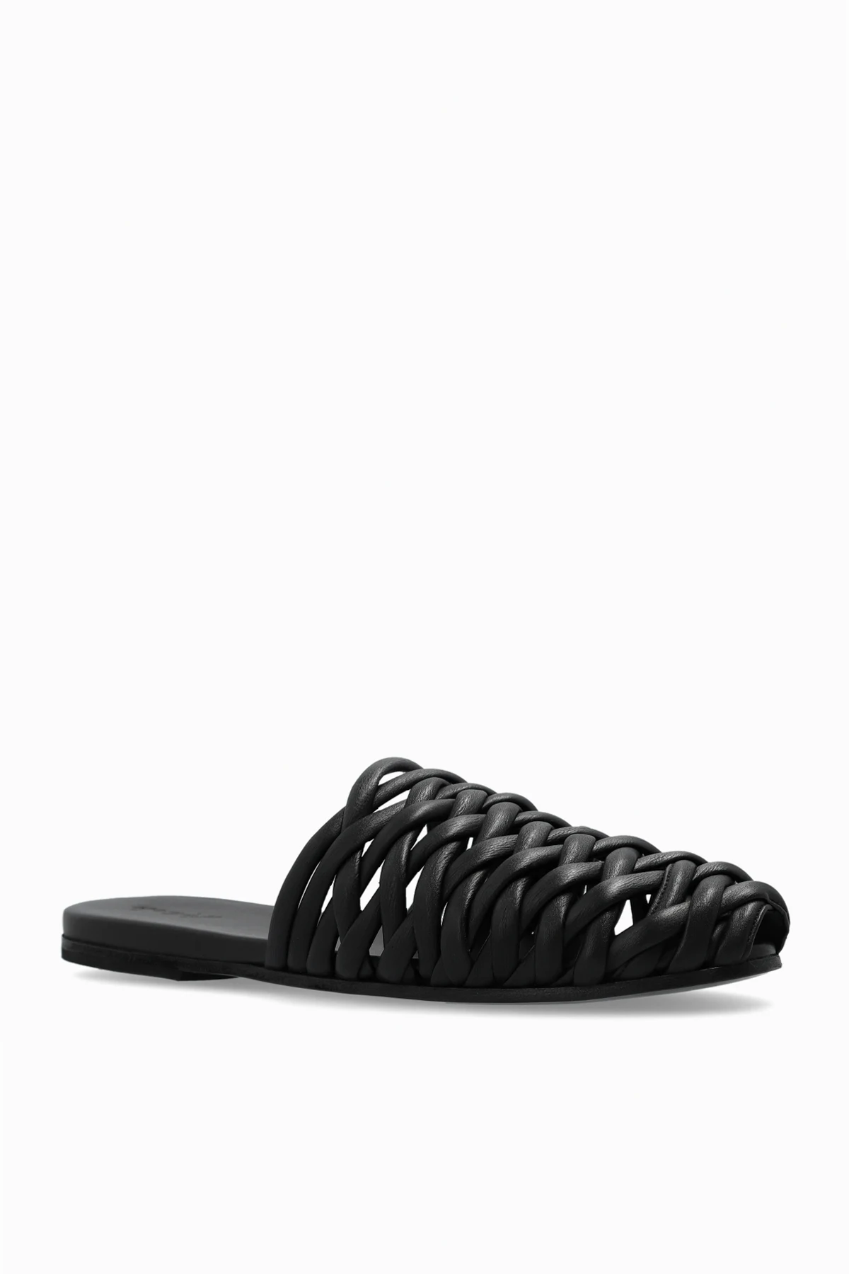 Klapki w kolorze czarnym, model ‘Steccoblocco’ Marsell. Wykonane ze skóry. Dekoracyjnie plecione. Czarna podeszwa wykonana ze skóry i gumy.