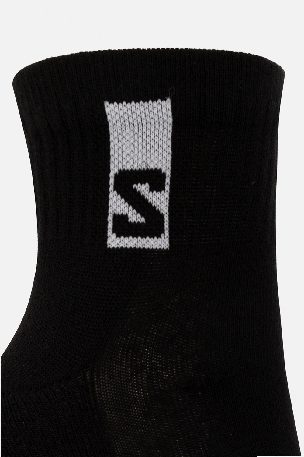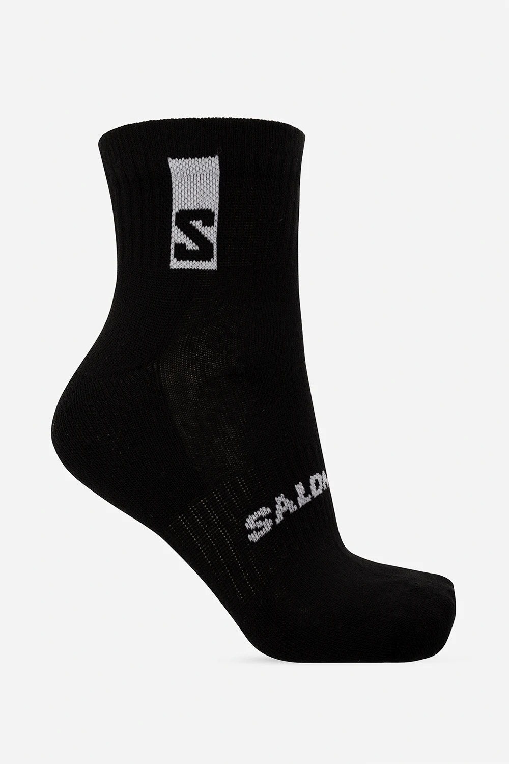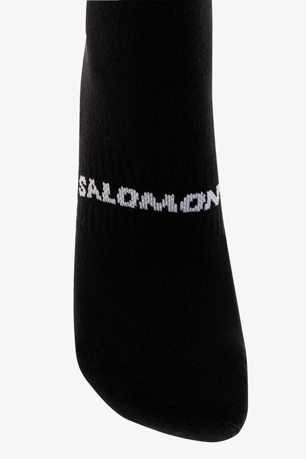 Trójpak czarnych skarpet Salomon. Wykonane z mieszanki bawełny. Ozdobione wyszytym logo w kolorze białym. Wykończone ściągaczem.