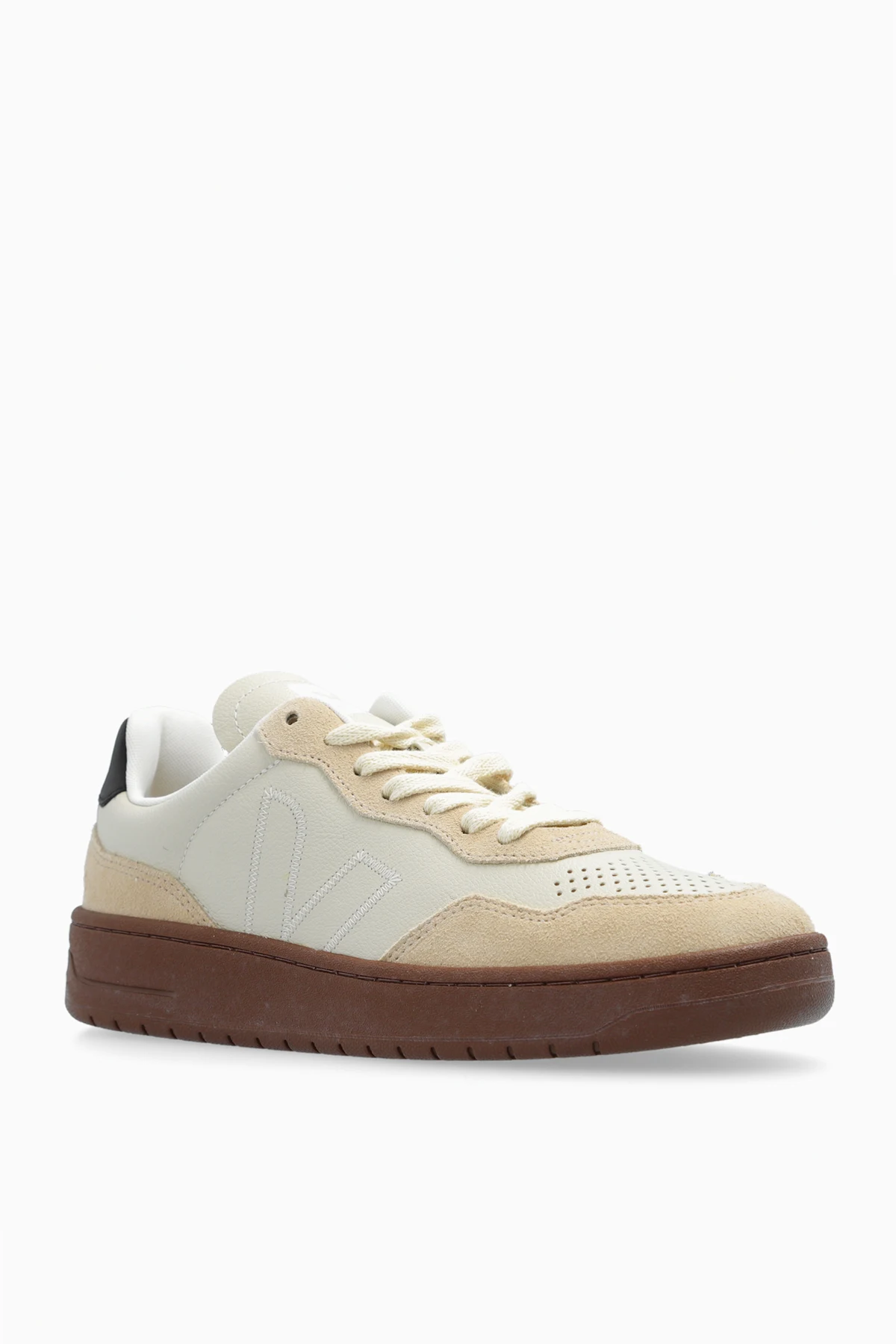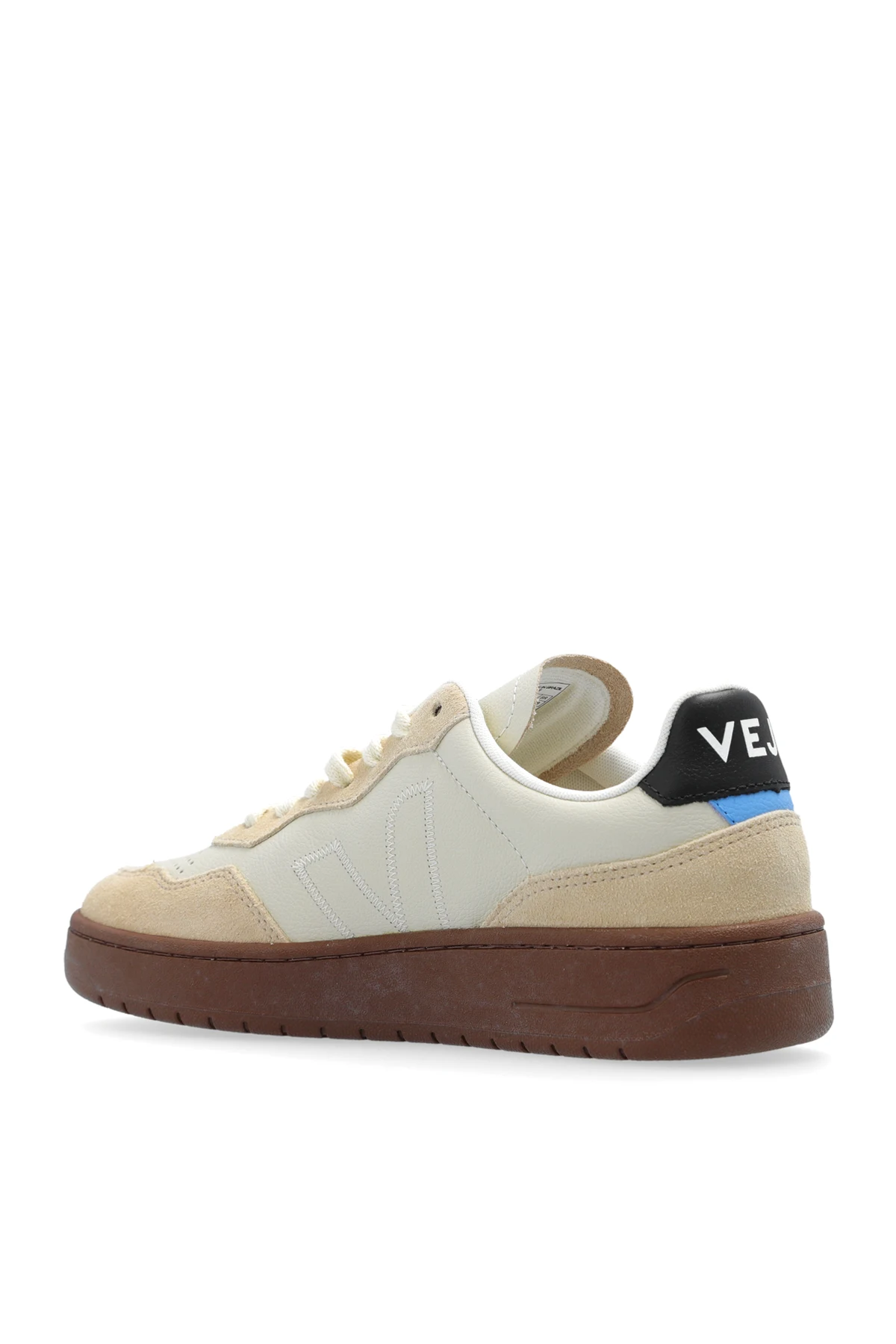 Beżowo-czarno-niebieskie, sznurowane buty sportowe, model ‘V-90 ZZ O.T. Leather’ Veja. Wykonane ze skóry i zamszu. Ozdobione wyszytym i nadrukowanym logo. Z przodu perforacja. Sznurówki wykonane z organicznej bawełny. Warstwa wewnętrzna o specjalnej, siateczkowej strukturze wykonana z materiału pochodzącego z recyklingu – cechuje się wyjątkową odpornością na tarcie. Wkładka wykonana z trzciny cukrowej, gumy amazońskiej, bawełny organicznej i pochodzącej z recyklingu pianki EVA. Brązowa, gumowa podeszwa wykonana z materiałów organicznych oraz pochodzących z recyklingu.