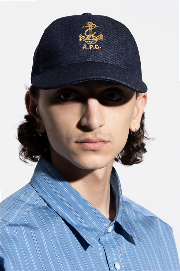 Czapka z daszkiem z ekskluzywnej kolekcji marki A.P.C. to wyrafinowany dodatek wyróżniający się ponadczasową elegancją oraz miejskim charakterem. Wykonana z wysokogatunkowej tkaniny o splocie przywodzącym na myśl denim, oczarowuje jednolitym, głębokim odcieniem granatu. Sześciopanelowa konstrukcja oraz lekko zaokrąglony daszek zapewniają klasyczną, ponadczasową formę, zaś regulowane zapięcie na metalową sprzączkę gwarantuje indywidualne dopasowanie.