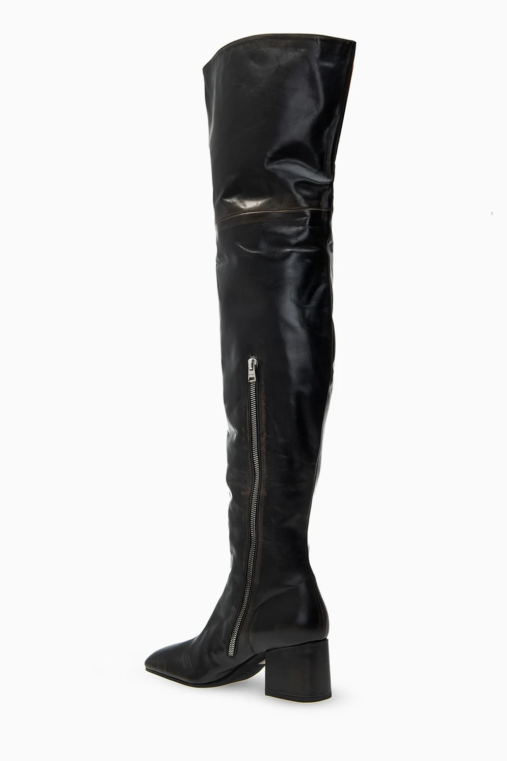 Czarno-brązowe, cieniowane kozaki za kolano na obcasie Marni. Wykonane ze skóry. Zapinane z boku na zamek. Czarna, gumowa podeszwa.