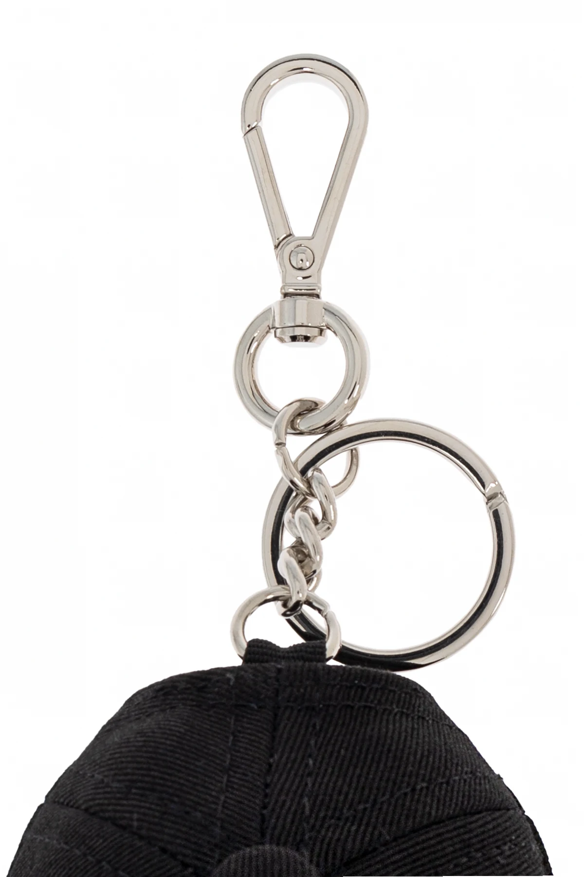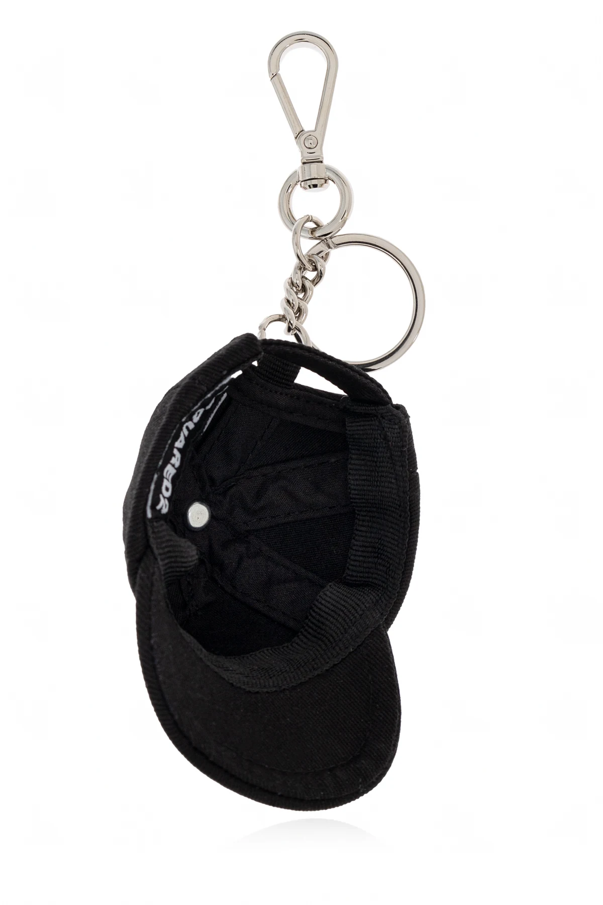 Zaprezentowany brelok z zawieszką od renomowanej marki Dsquared2 jest kwintesencją stylu i funkcjonalności. Wykonany z najwyższej jakości 100% bawełny , zachwyca swoją wytrzymałością oraz gruboziarnistą fakturą, która nadaje mu wyjątkowy charakter. Jego design przypominający miniaturową, czarną czapkę z daszkiem, zdobioną charakterystycznym, czerwonym logiem projektanta na przednim segmencie, staje się nie tylko praktycznym, ale i eleganckim dodatkiem.