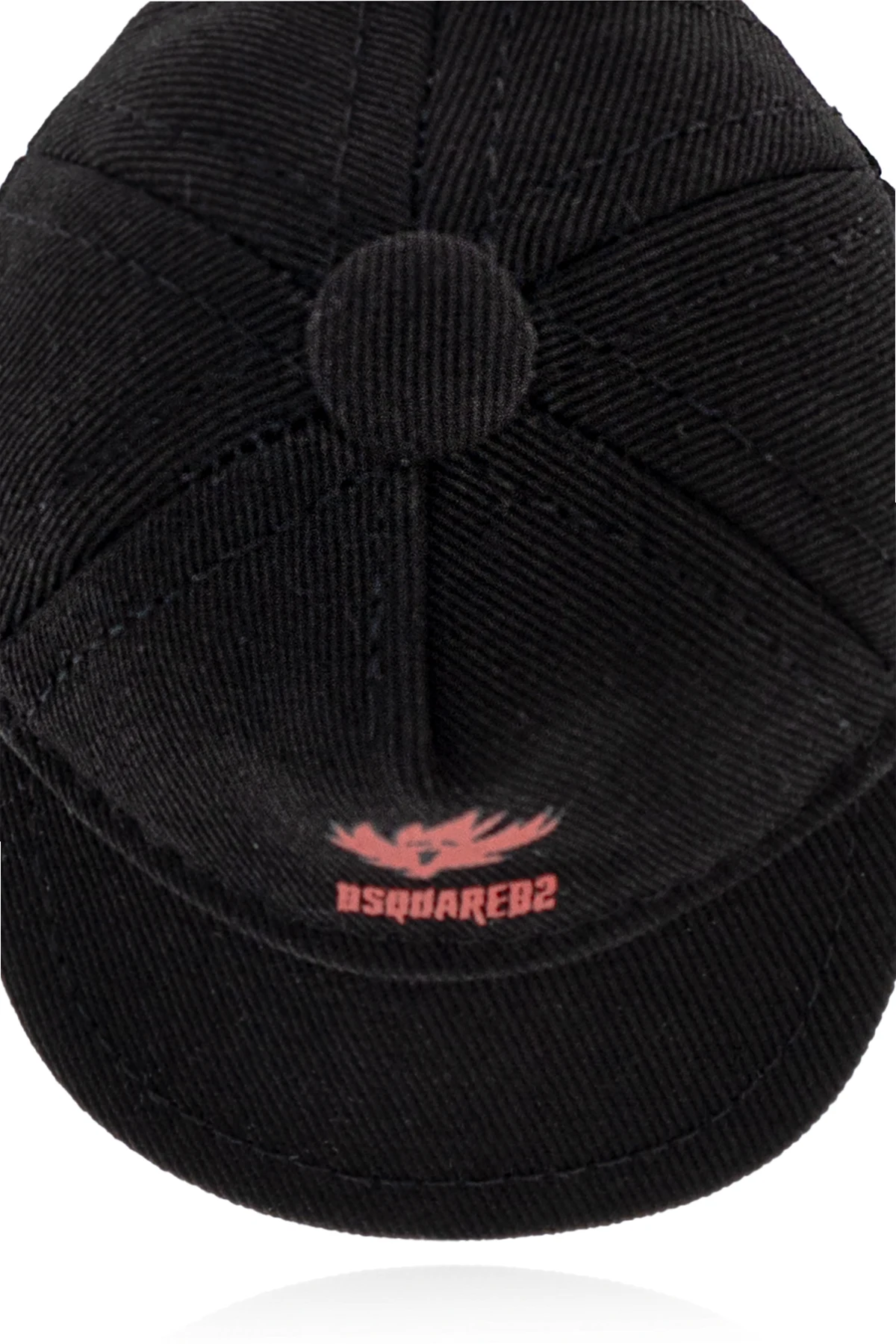 Wnętrze czapki, utrzymane w czarnym kolorze z białym naszytym tekstem, może kryć informacje o marce lub instrukcje dotyczące pielęgnacji, podkreślając tym samym dbałość projektanta o każdy, nawet najmniejszy detal.
