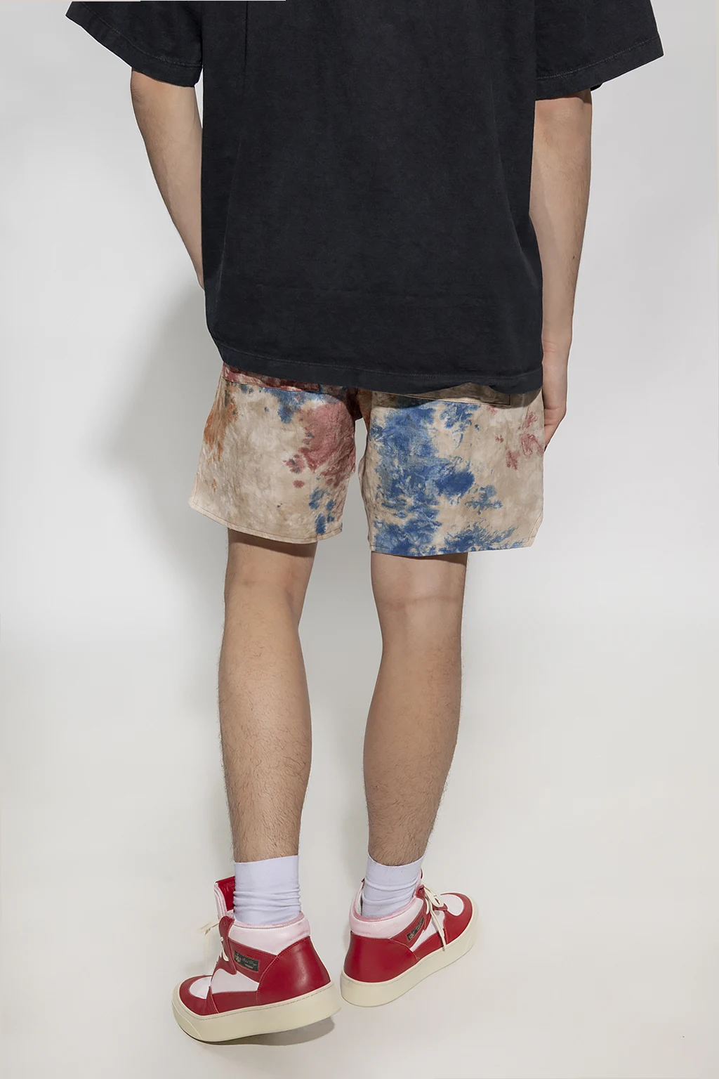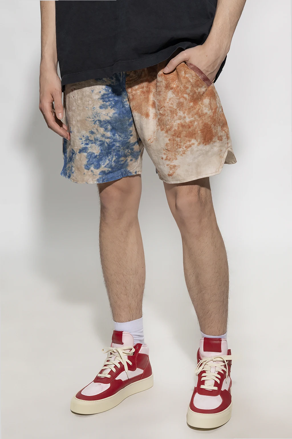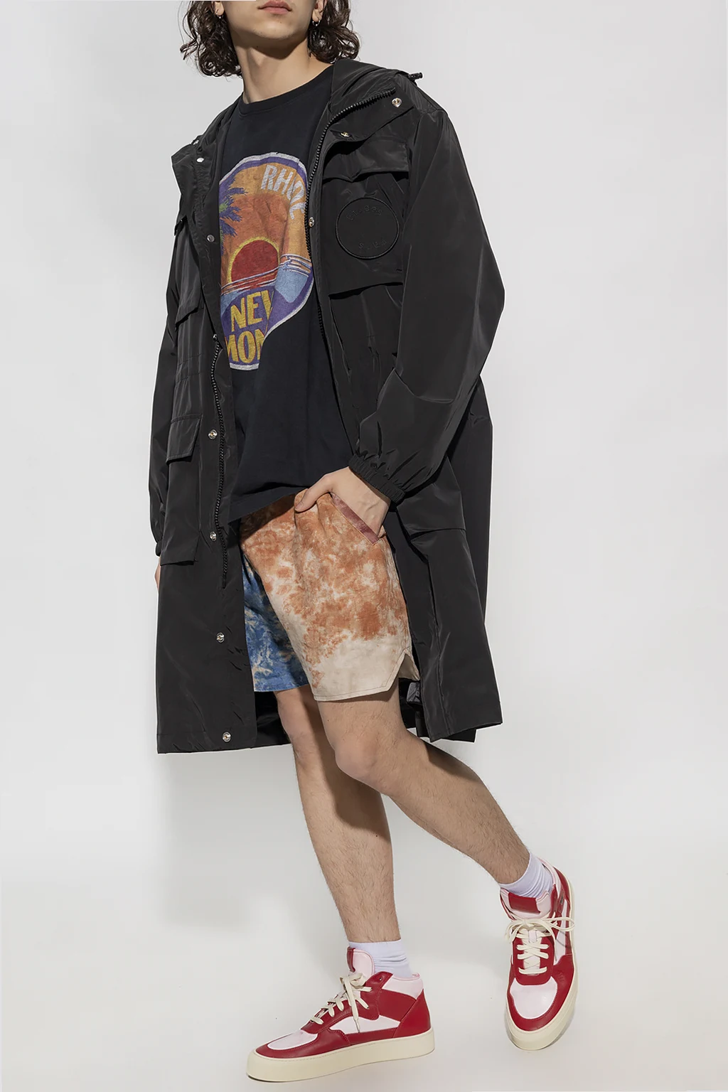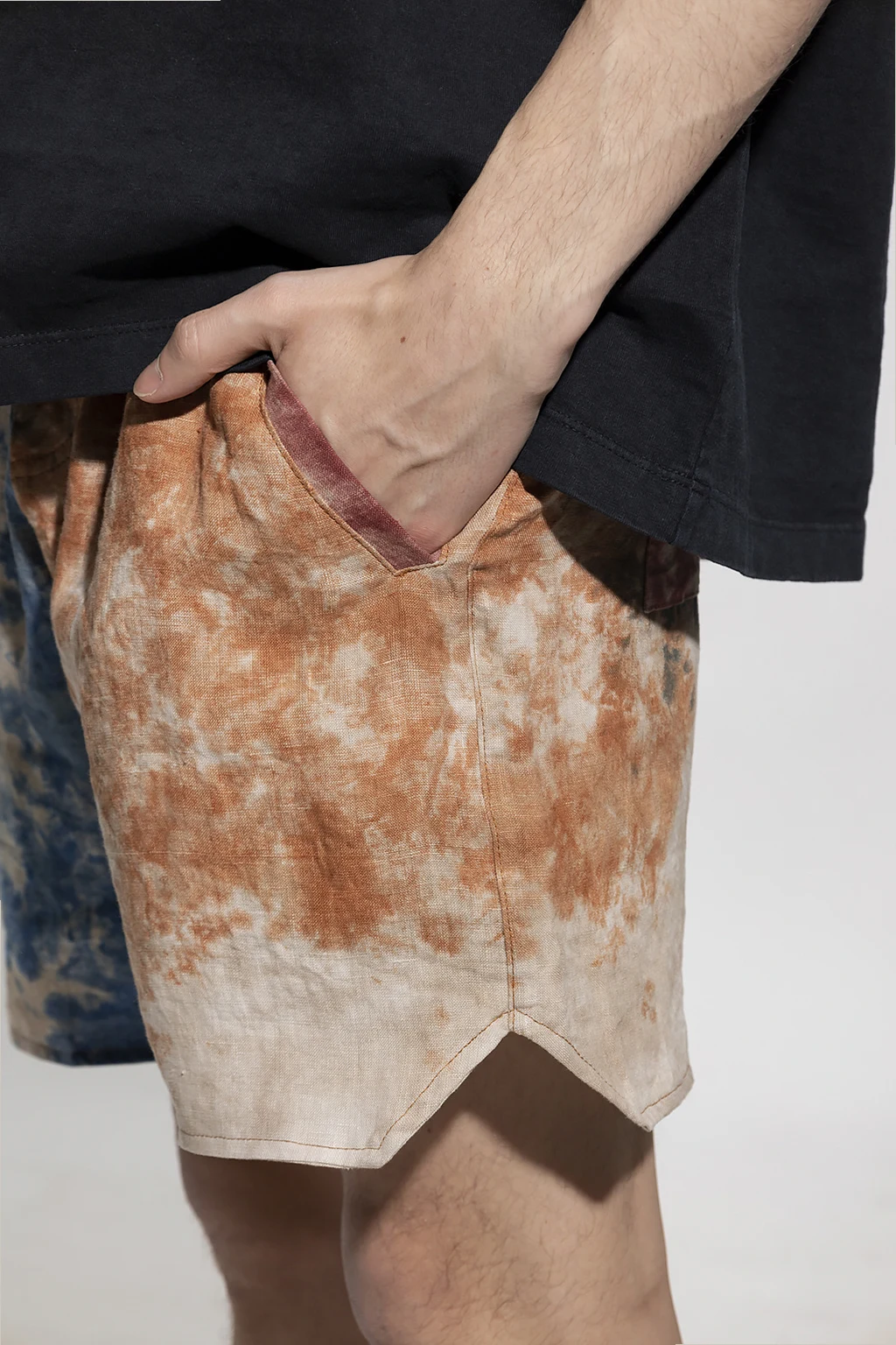Kolorowe, lniane szorty Rhude. W pasie ściągane trokami. Z przodu i z tyłu dwie kieszenie. Nogawki z rozcięciem po boku.