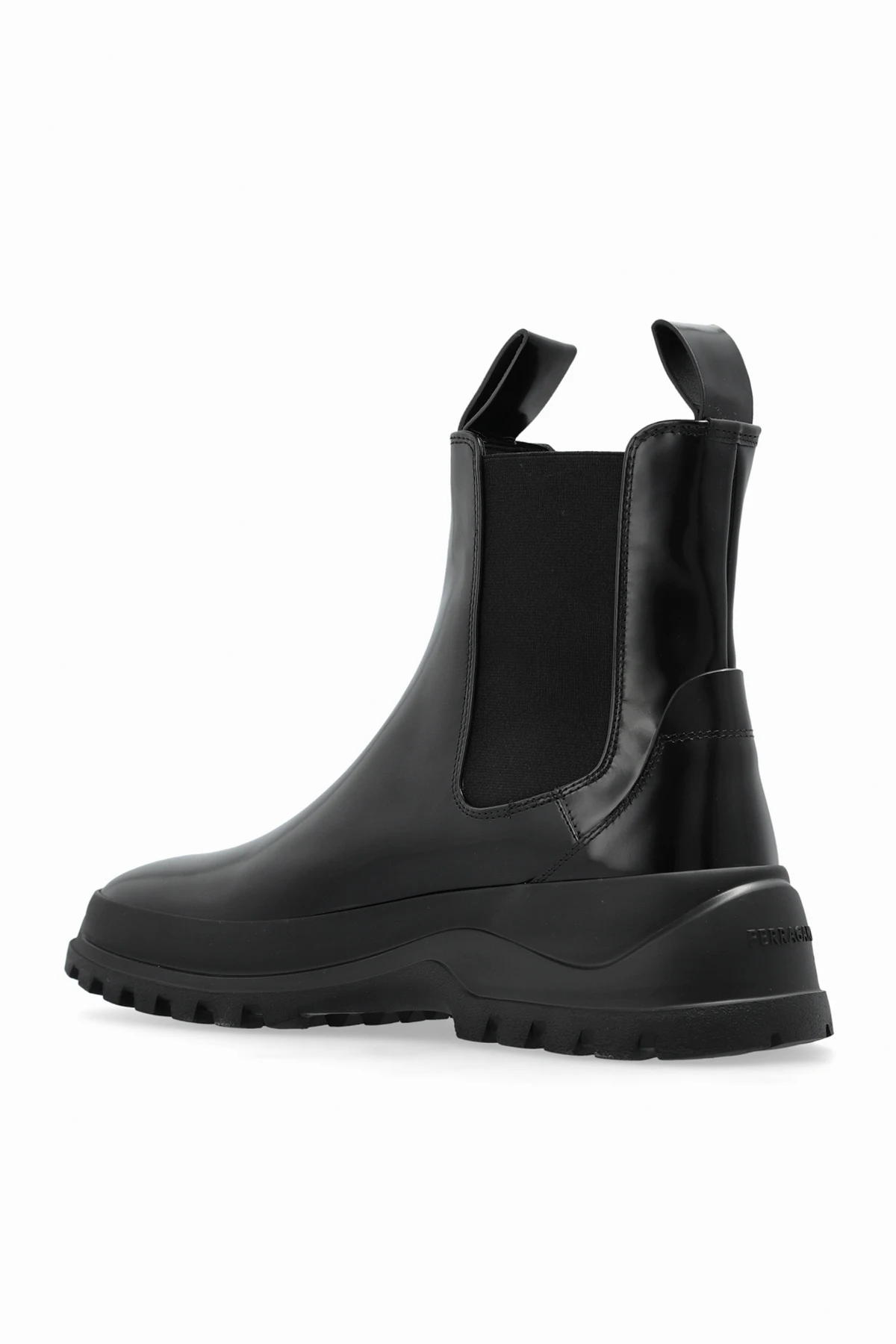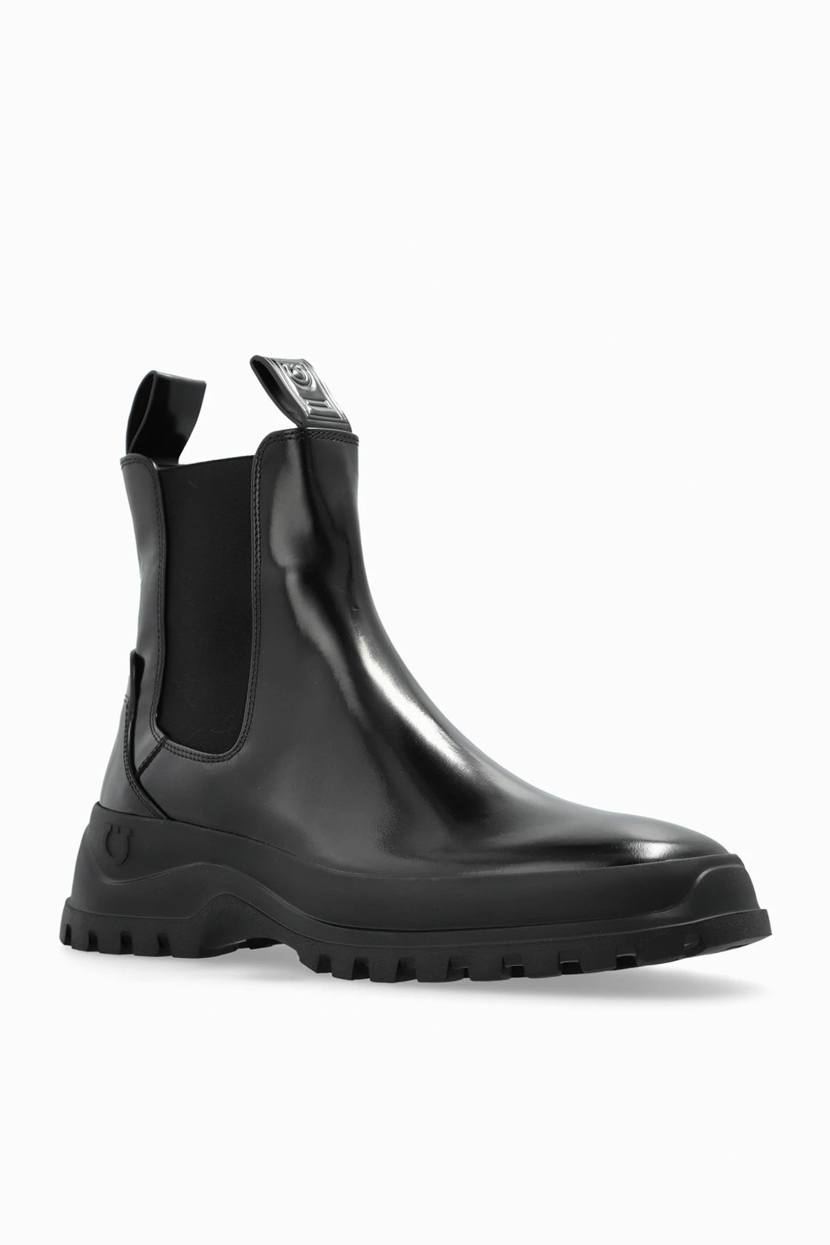 Odkryj wyjątkowe Skórzane sztyblety "Bossons" od renomowanej marki FERRAGAMO , które łączą w sobie klasyczną elegancję z nowoczesnym designem. Wykonane z najwyższej jakości błyszczącej skóry , te czarne sztyblety emanują luksusem i wyrafinowaniem.