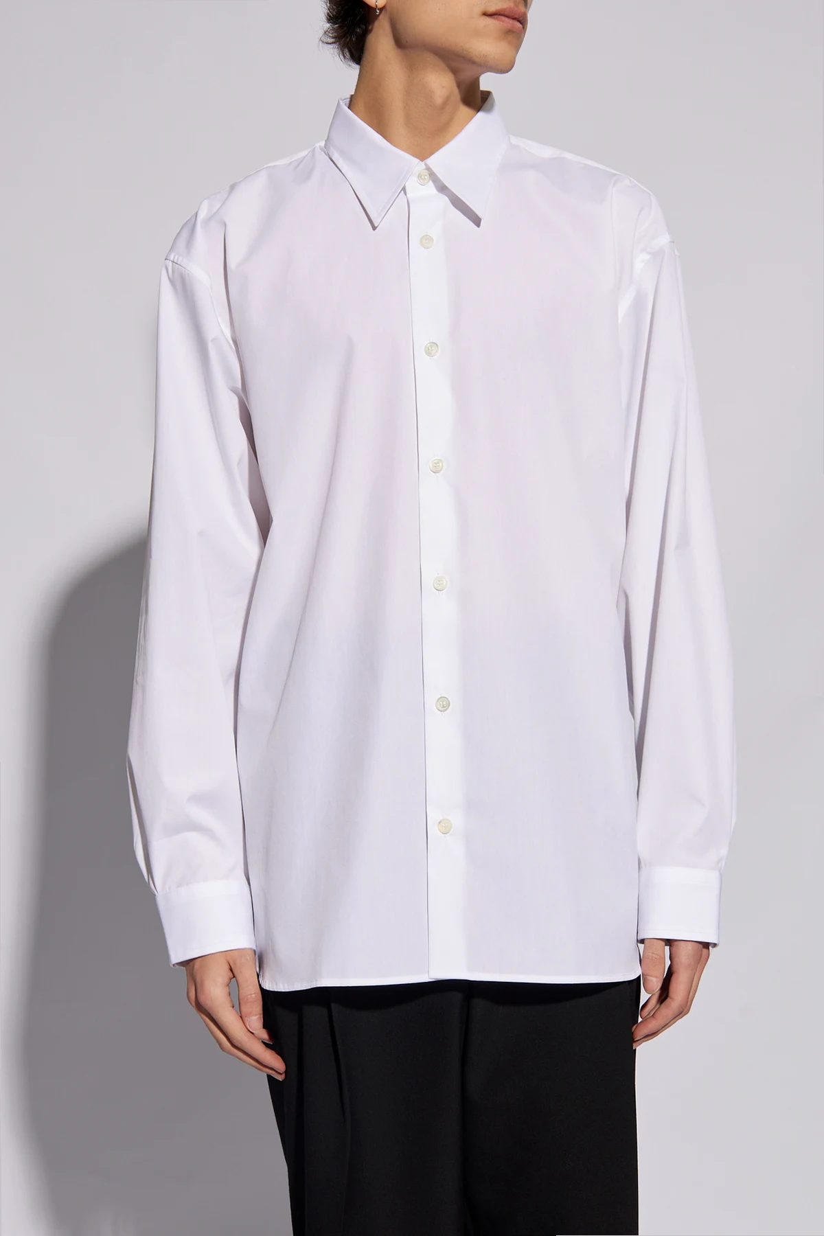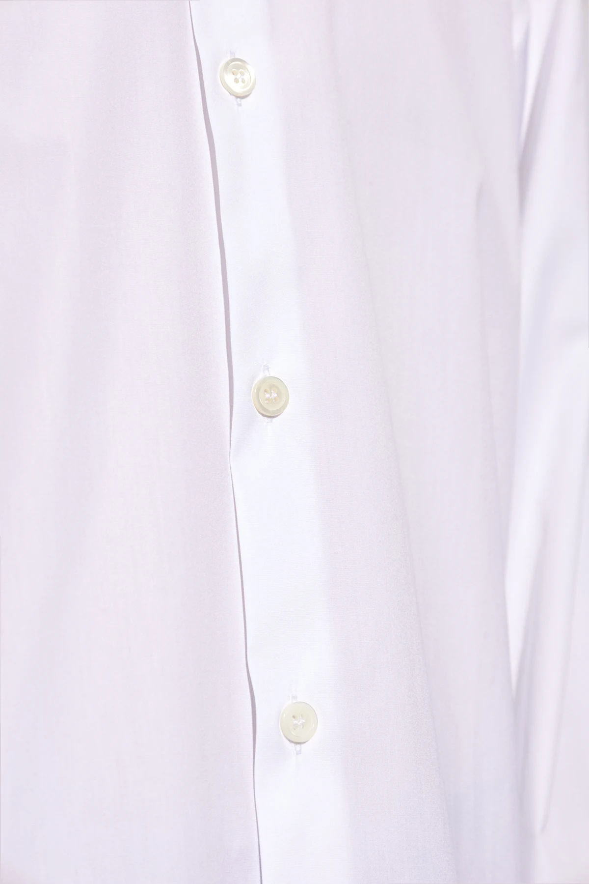 Biała koszula Dries Van Noten. Wykonana z bawełny. Zapinana na guziki. Ozdobiona wzorem w prążki. Długie rękawy zakończone mankietem zapinanym na guziki.