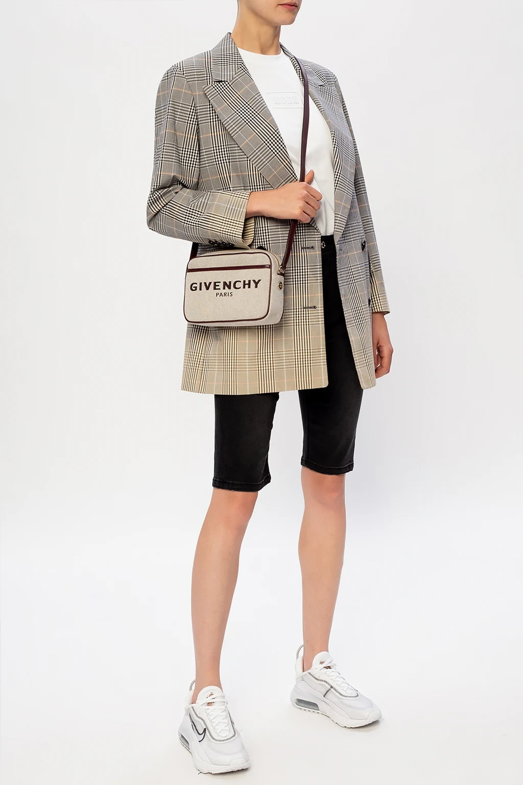 – Beżowe fakturowane szorty oversize w jodełkę