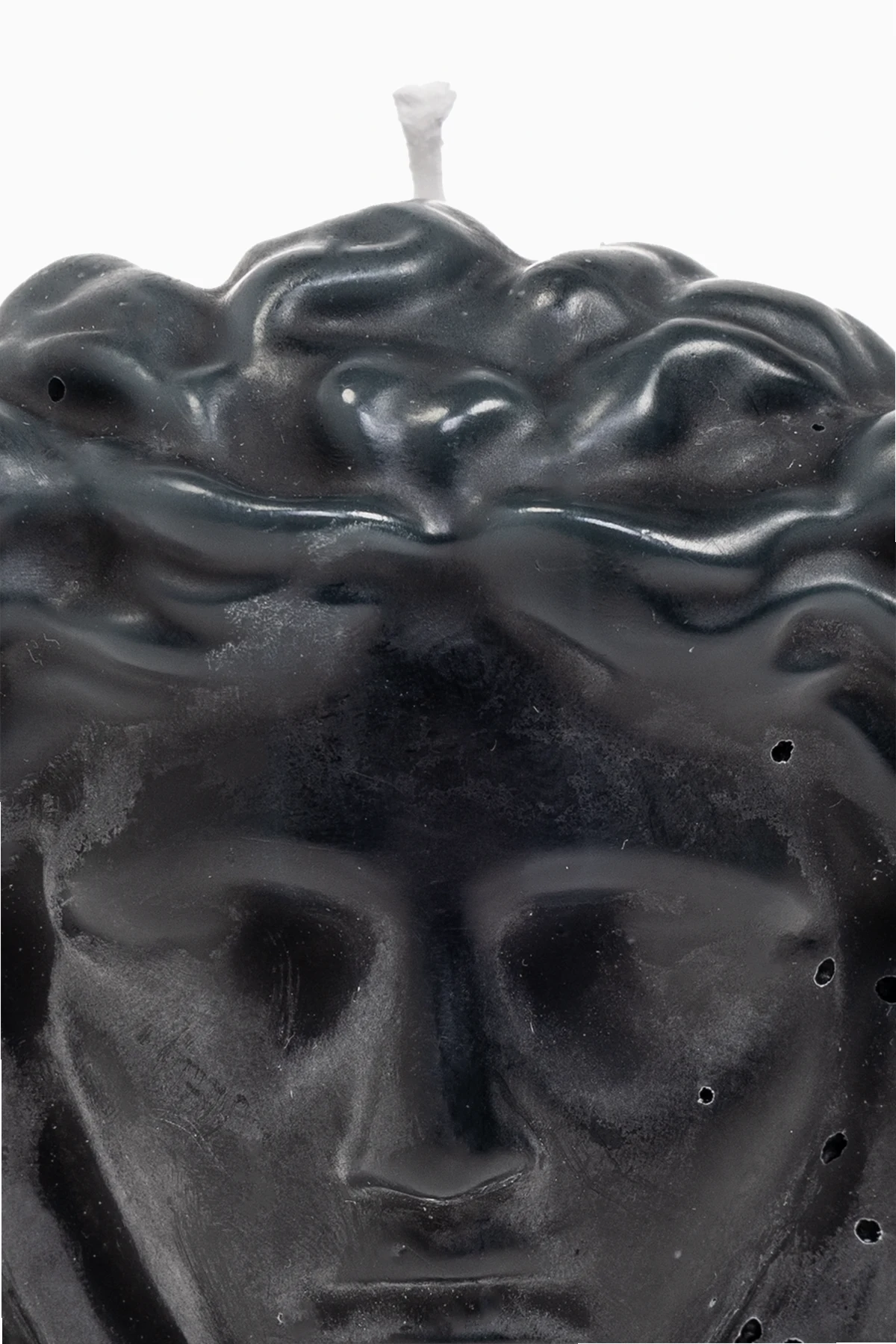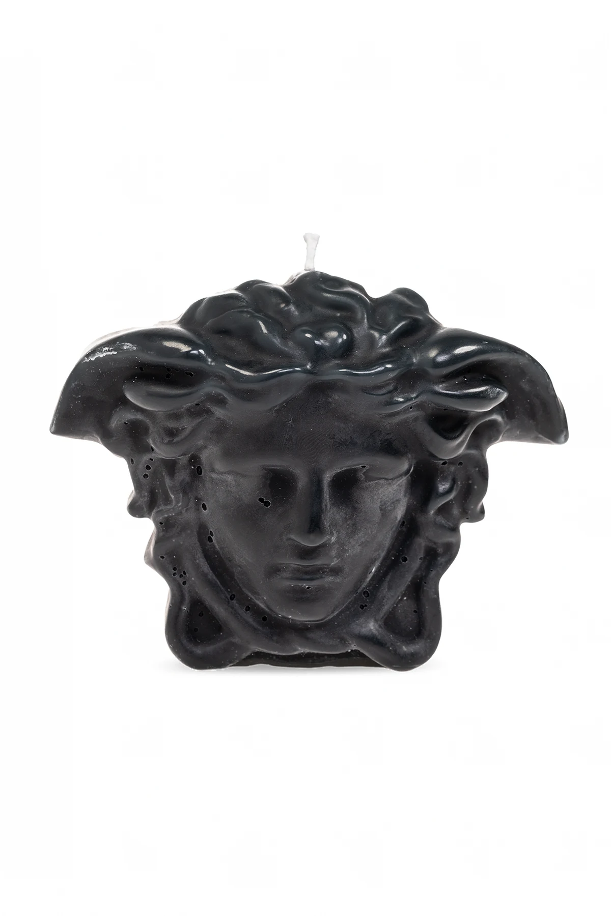 Czarna świeca zapachowa w kształcie głowy Meduzy Versace Home. Wykonana z wosku.