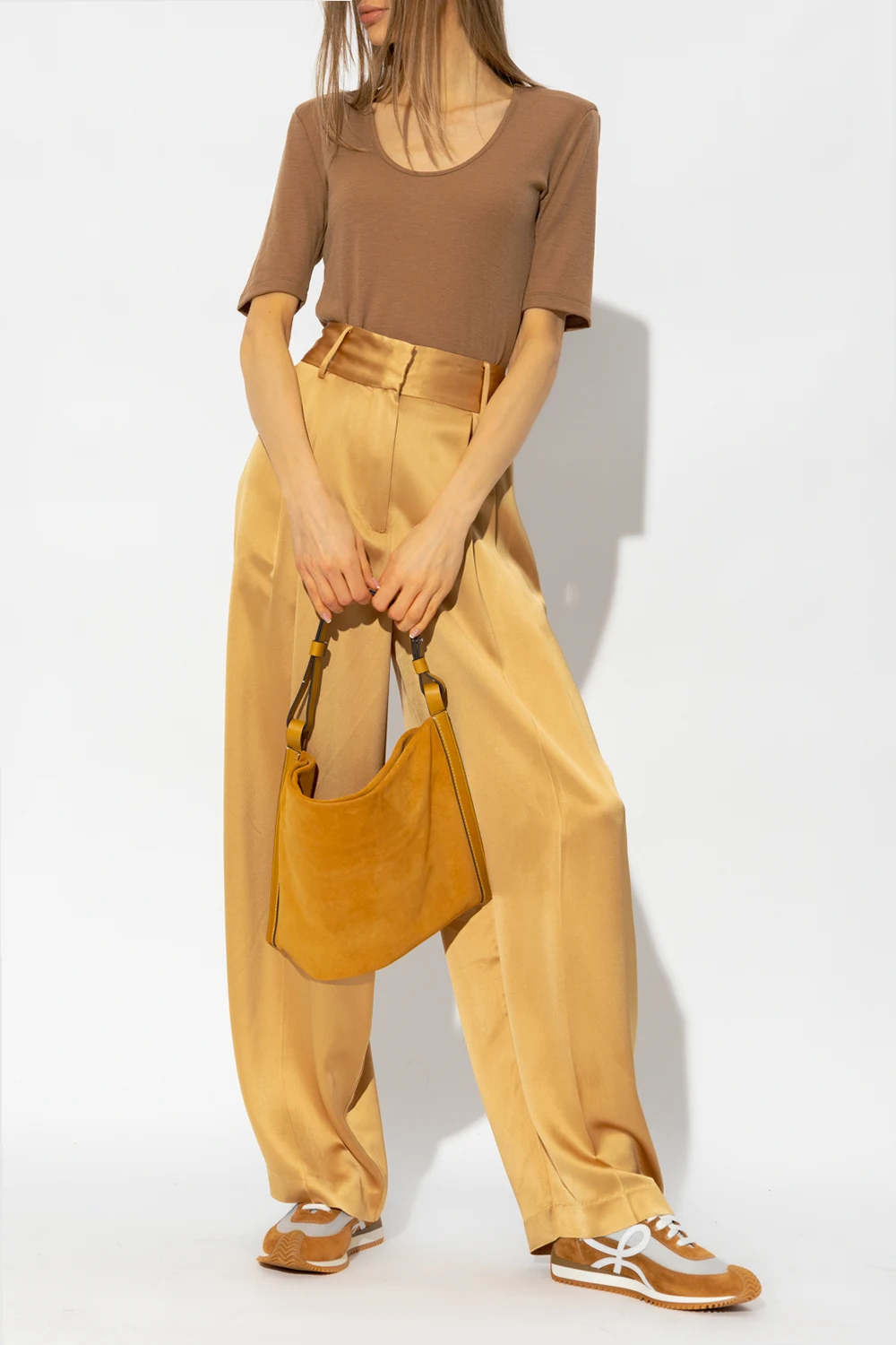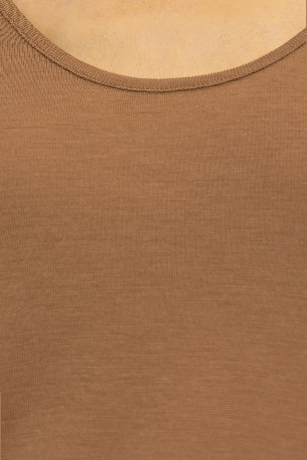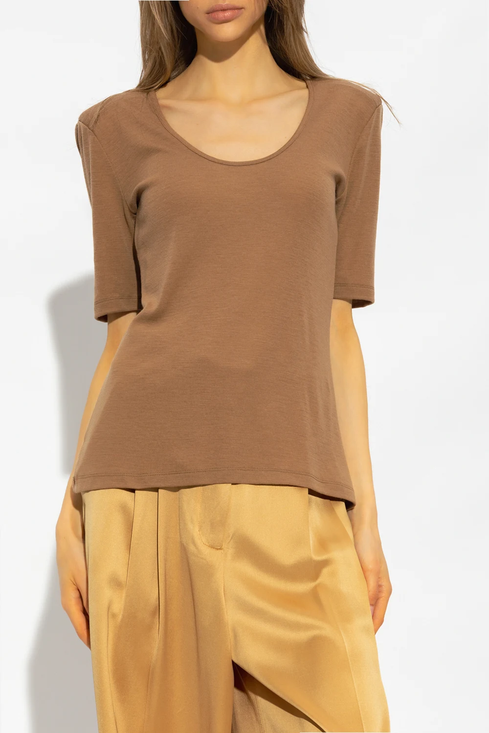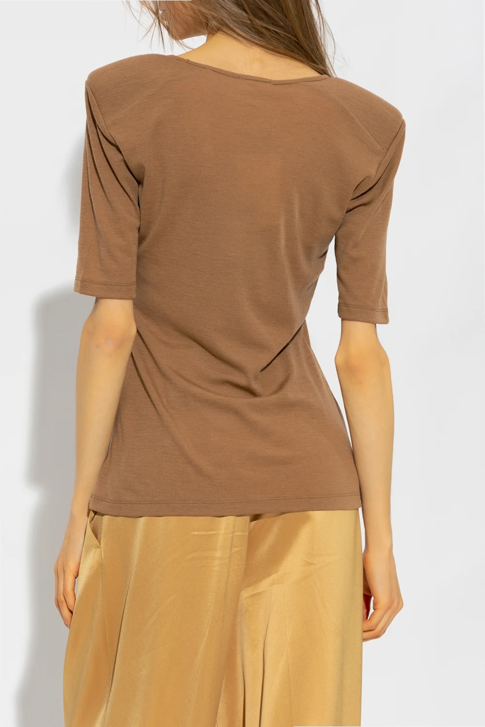 Brązowy top By Malene Birger. Wykonany z wełny. W ramionach wszyte usztywnienia. Krótkie rękawy.