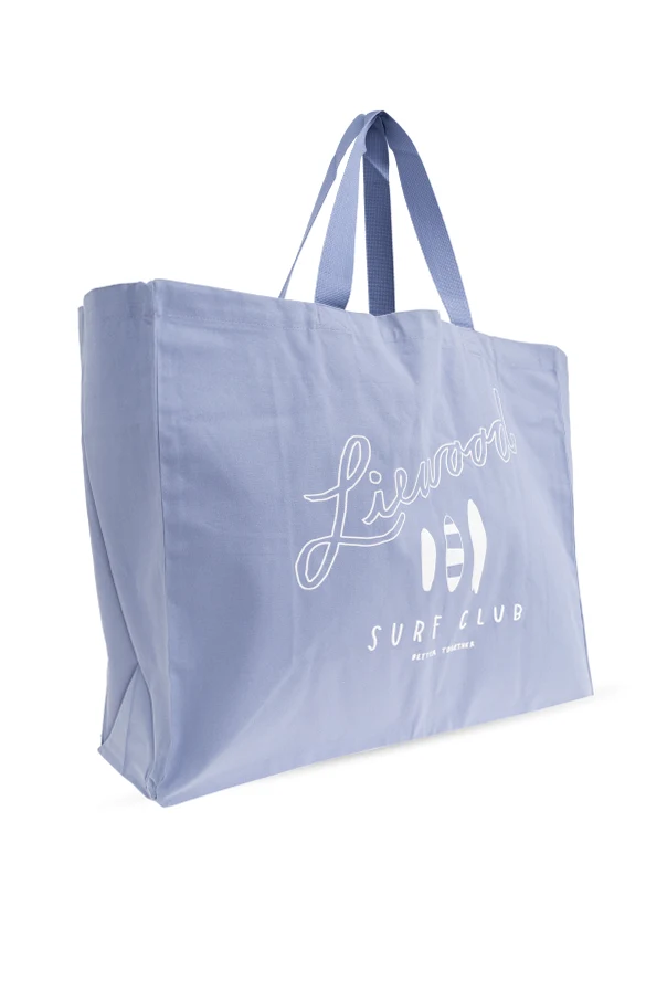 Torba typu shopper marki Liewood urzeka subtelną estetyką w jasnym niebieskim kolorze, harmonijnie podkreślającą pastelowy ton. Prostokątny, pojemny kształt z szerokim dnem oraz dwoma eleganckimi uchwytami zapewnia komfort noszenia zarówno na ramieniu, jak i w dłoni.
