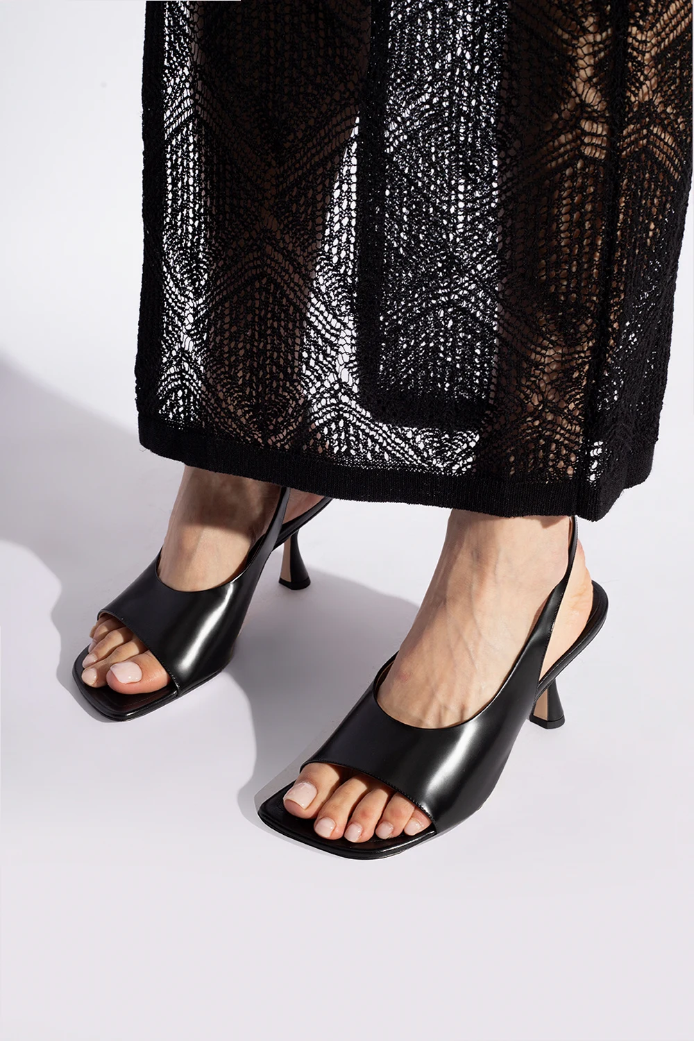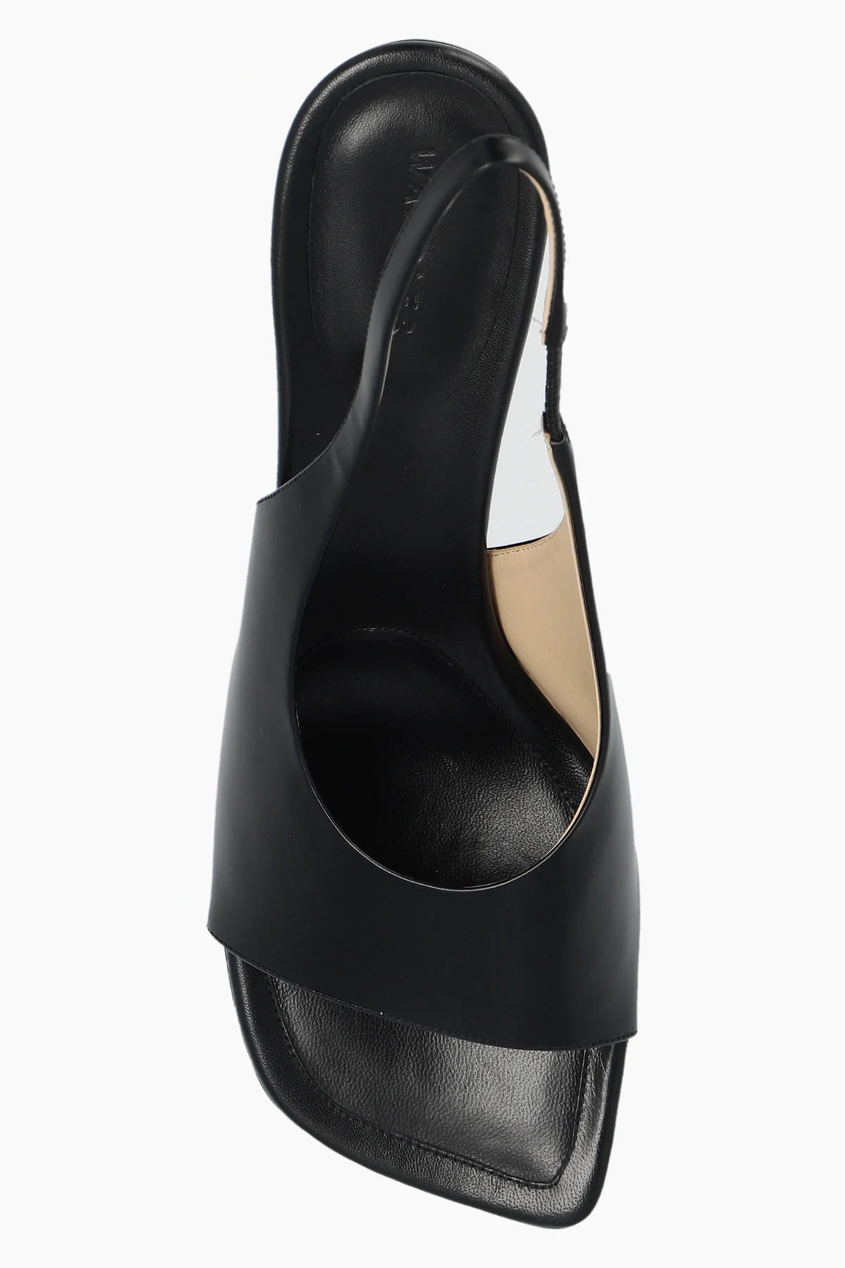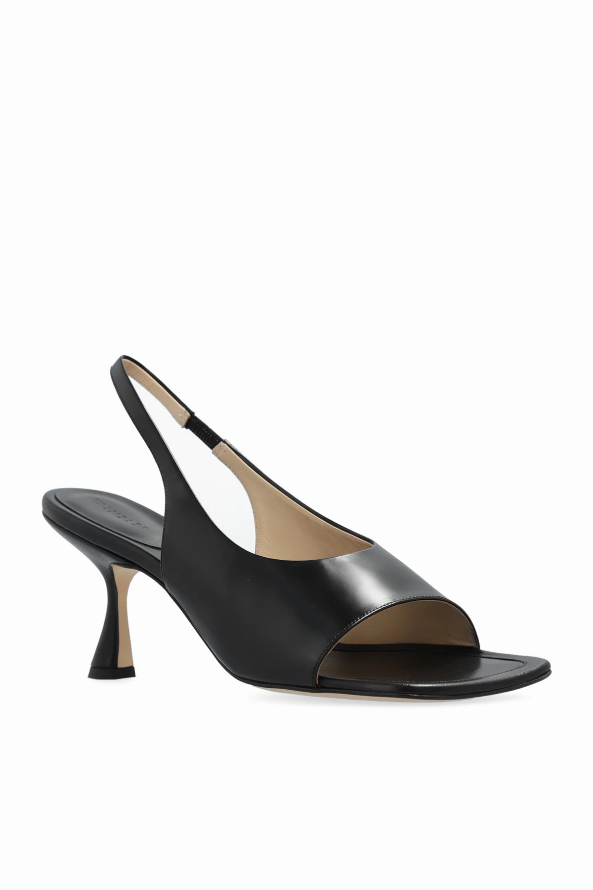 Czarne sandały na obcasie, model ‘Julio’ Wandler. Wykonane z gładkiej skóry. Kwadratowy nosek. Jasnobeżowa, skórzana podeszwa.