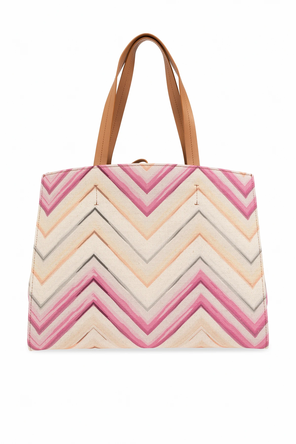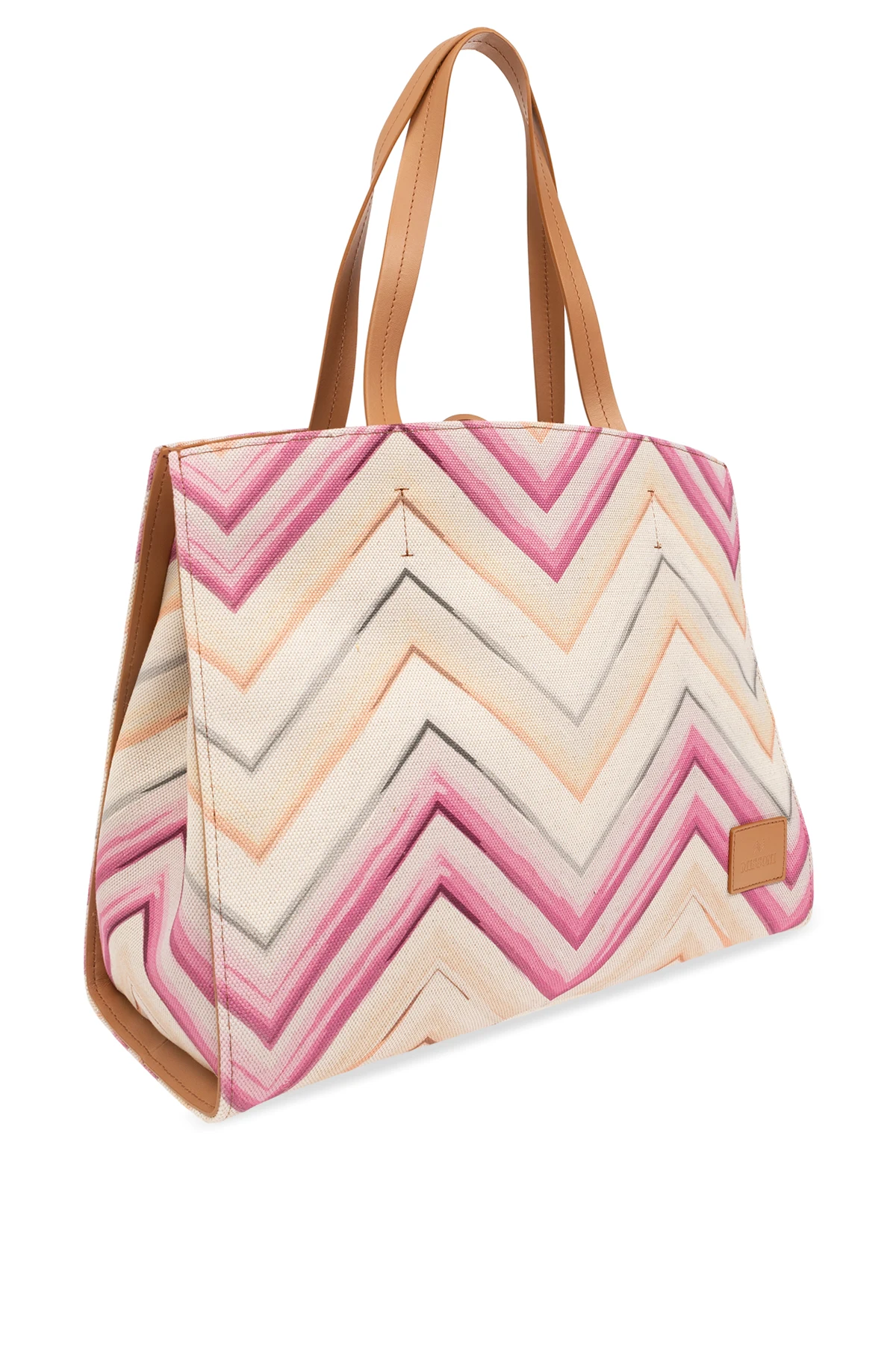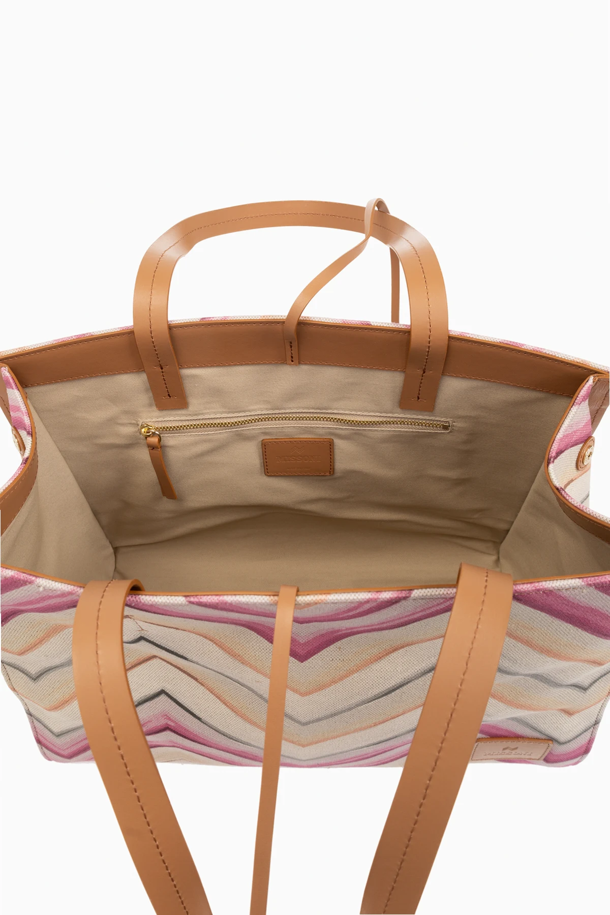 Zaprezentowana torba typu ‘shopper’ Missoni jest kwintesencją elegancji splecionej z praktycznością. Jej multikolorowy wzór chevron, malujący się na tkaninie w odcieniach różu, beżu i bieli, jest zarówno hipnotyzujący, jak i wyrafinowany. Geometryczna gra barw tworzy nie tylko wizualną przyjemność, ale również podkreśla unikatowy charakter produktu.