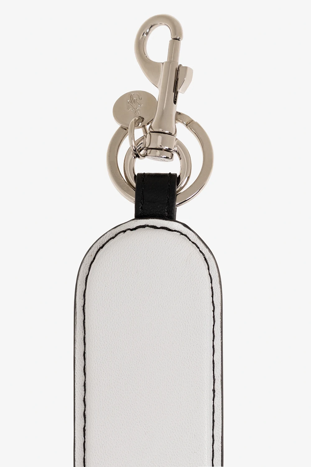 Brelok do kluczy w kolorze srebrnym JW Anderson. Ozdobiony skórzaną, biało-czarną zawieszką z wytłoczonym logo. Wykończony karabińczykiem.
