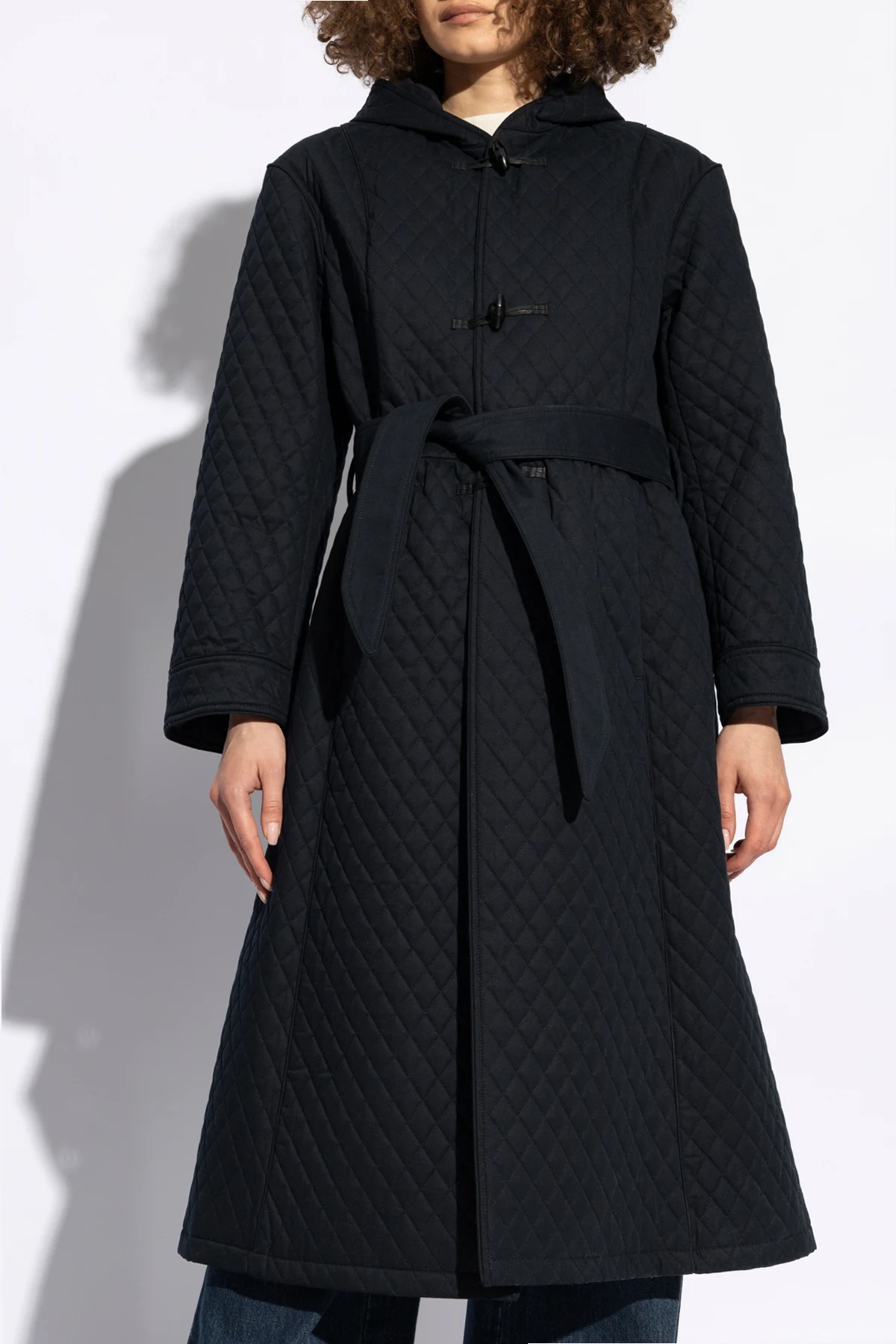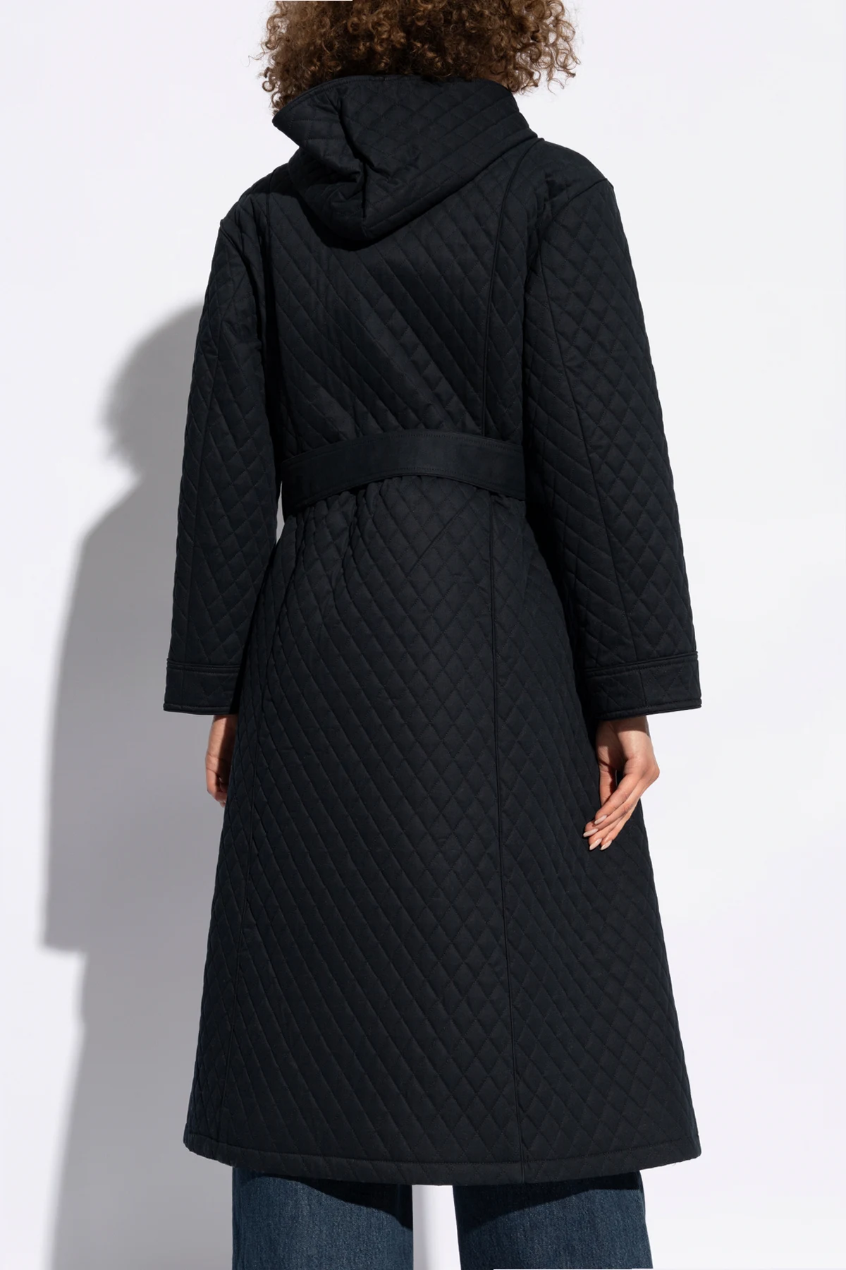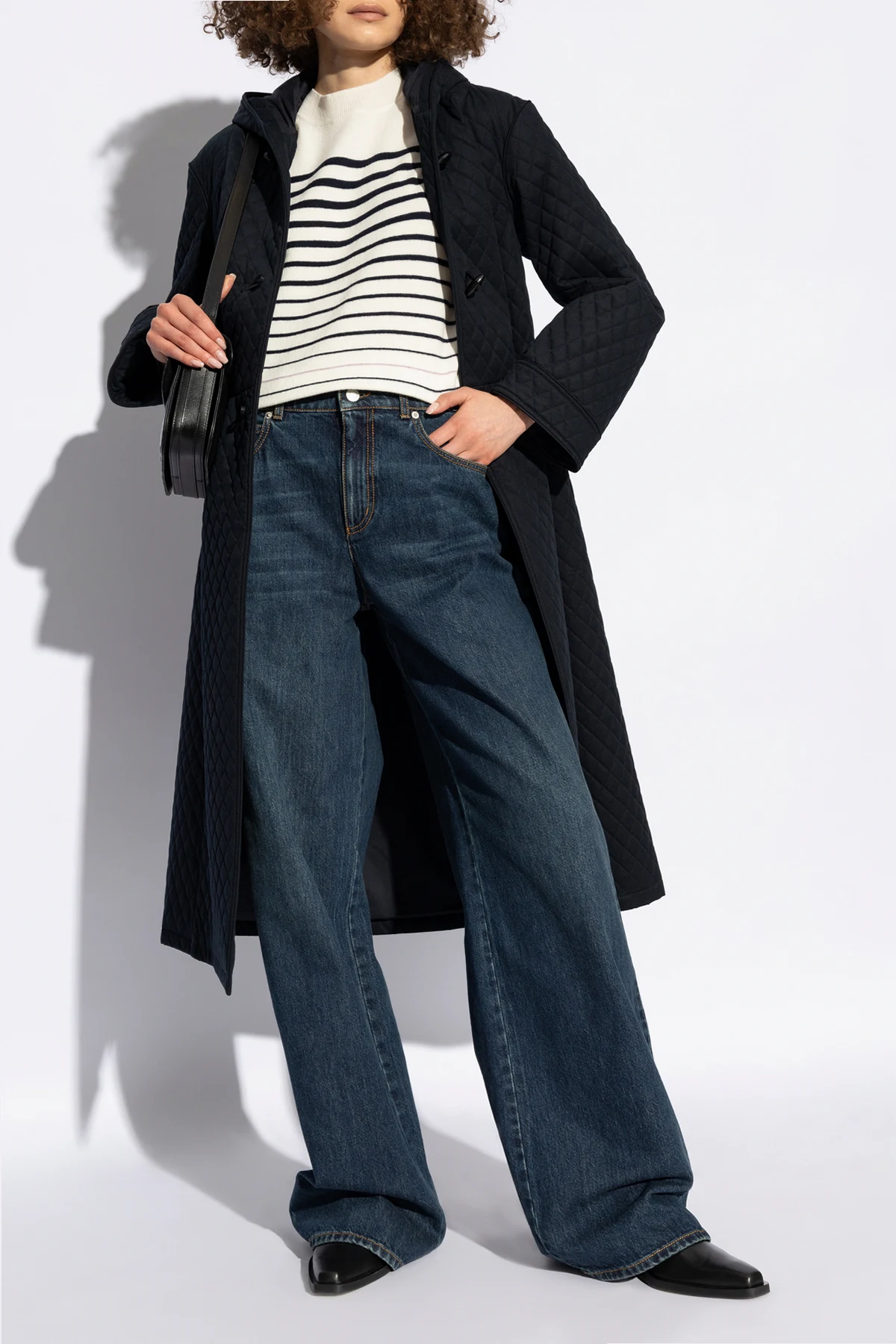 Tylna część płaszcza utrzymana jest w minimalistycznym stylu, kontynuującym pikowany wzór, co świadczy o subtelnym podejściu projektanta do detalów. Jakość materiałów i precyzja wykonania są synonimem luksusu, charakterystycznego dla marki A.P.C. , co czyni płaszcz `Ella` doskonałym wyborem dla wymagających klientów ceniących sobie wyrafinowanie i trwałość.