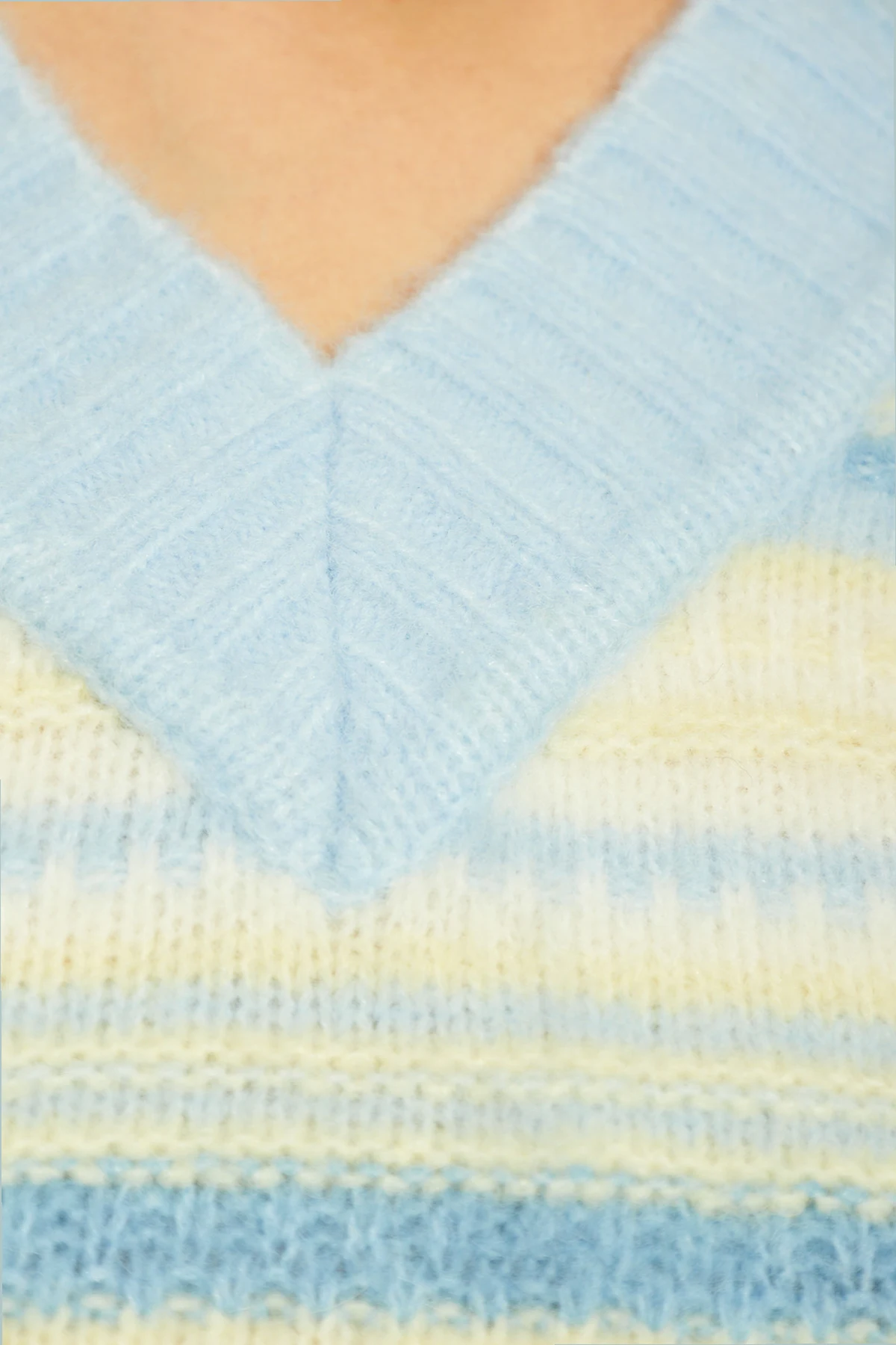 Dominujący kolor niebieski, przeplatanie pasów w różnych odcieniach niebieskiego i żółtego, nadają tej kamizelce wyrazisty charakter, który z pewnością wzbogaci każdą stylizację. Dekolt w szpic, zdobiony szerokimi prążkami, podkreśla elegancję projektu, a ściągacz na dole zapewnia idealne dopasowanie. Niezwykłość tej kamizelki podkreśla również dyskretne logo projektanta, umieszczone na przedniej części, co jest znakiem rozpoznawczym dla koneserów marki Ganni .