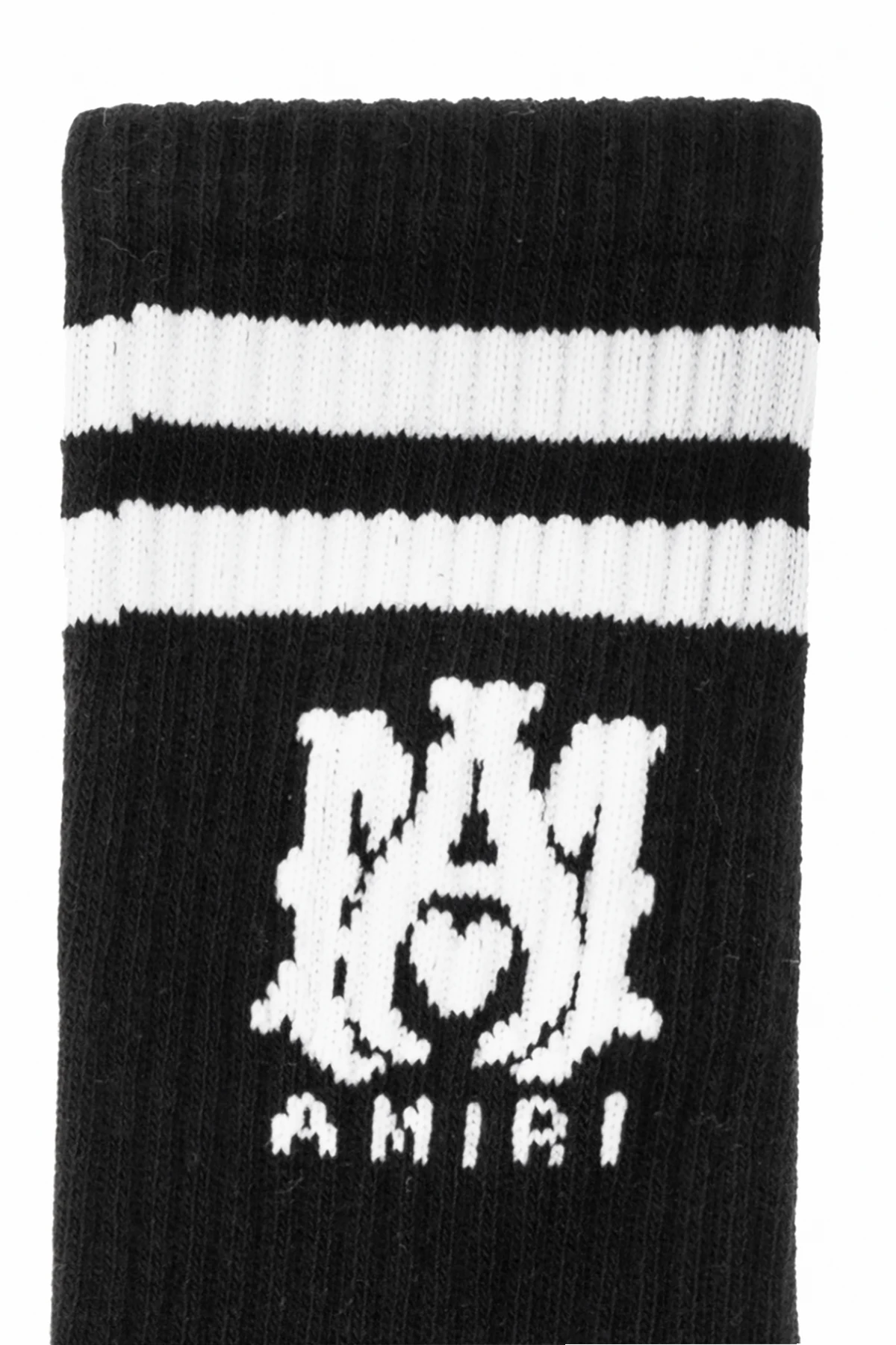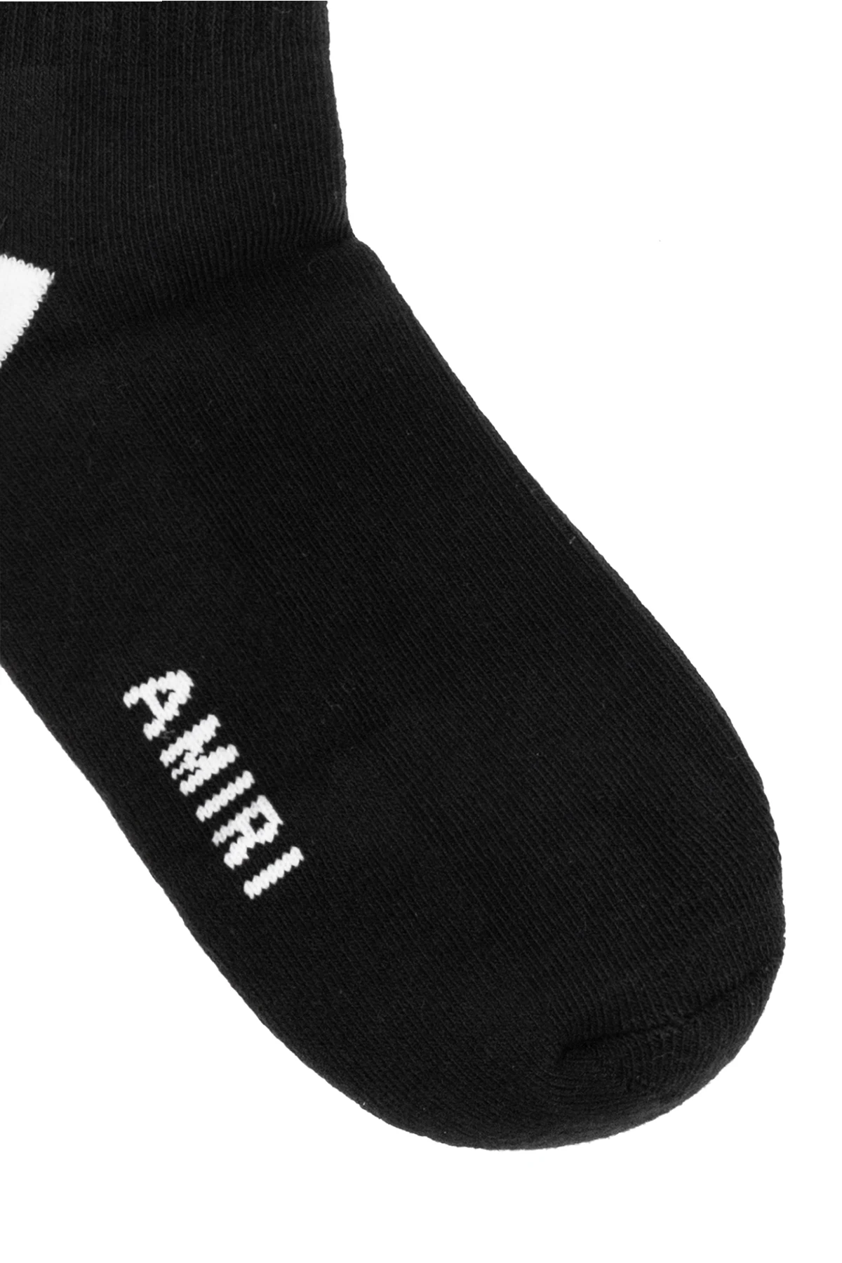 Czarne skarpety Amiri Kids. Wykonane z mieszanki bawełny. Ozdobione białym, wyszytym wzorem z logo. Wykończone ściągaczem.