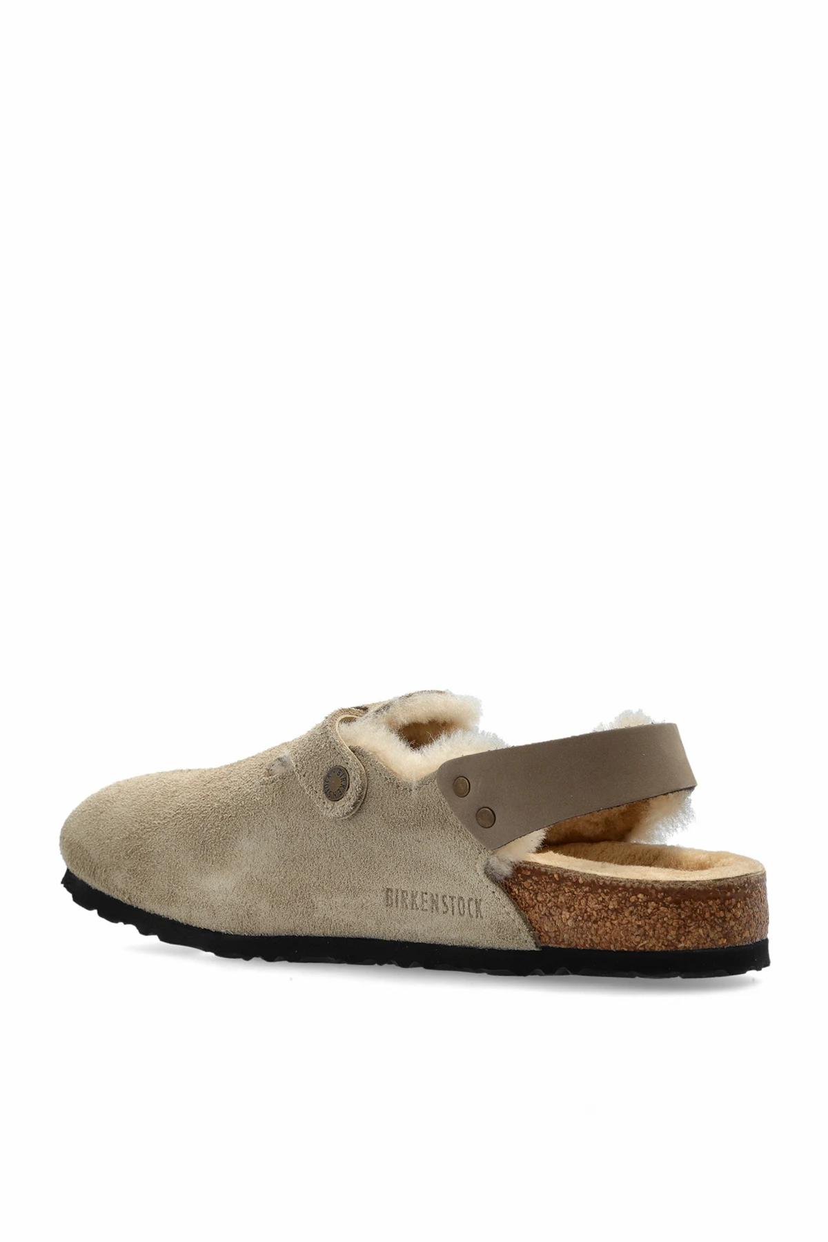 Detale takie jak dyskretny napis "BIRKENSTOCK" na boku oraz prosty, minimalistyczny design, podkreślają naturalne piękno materiałów.