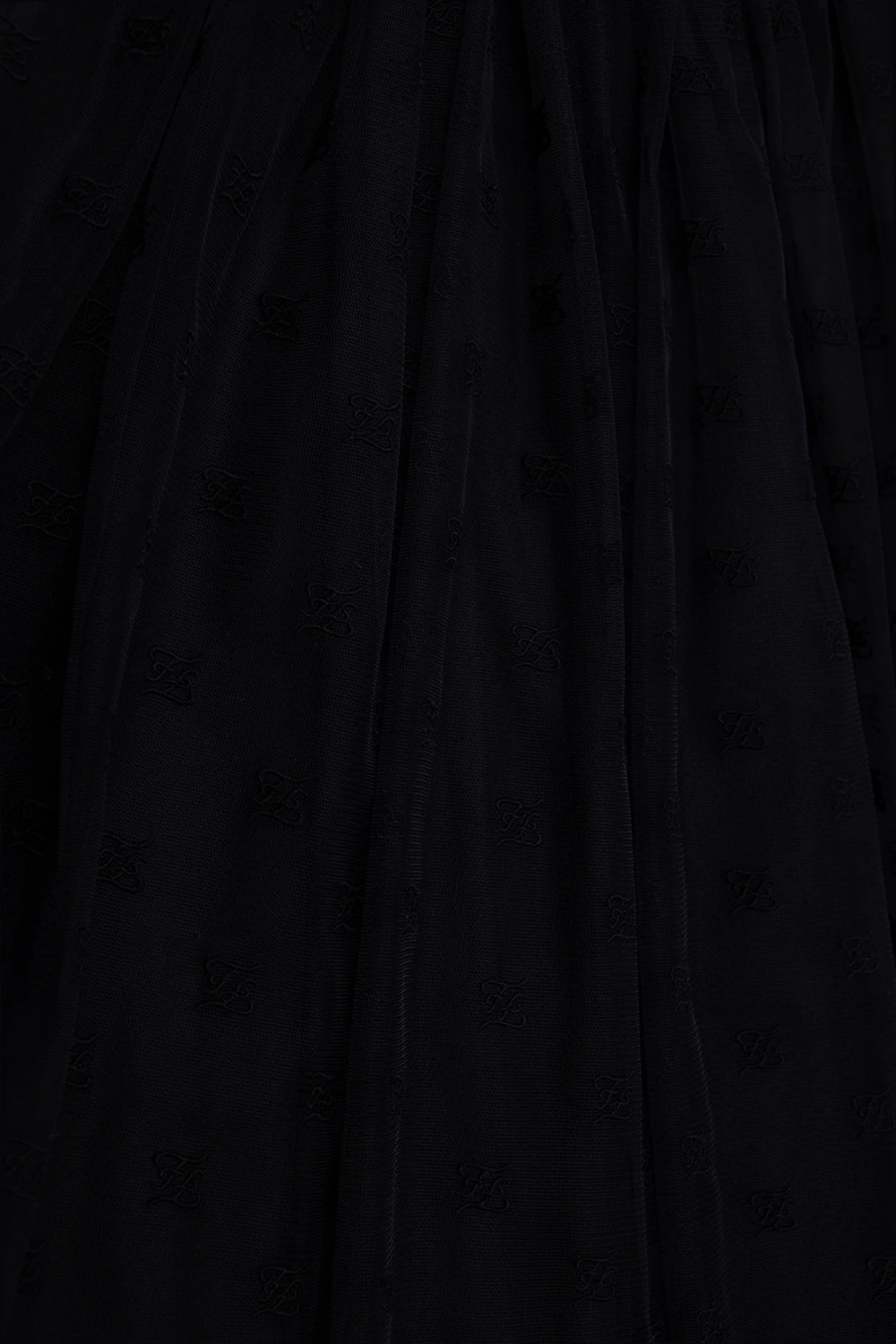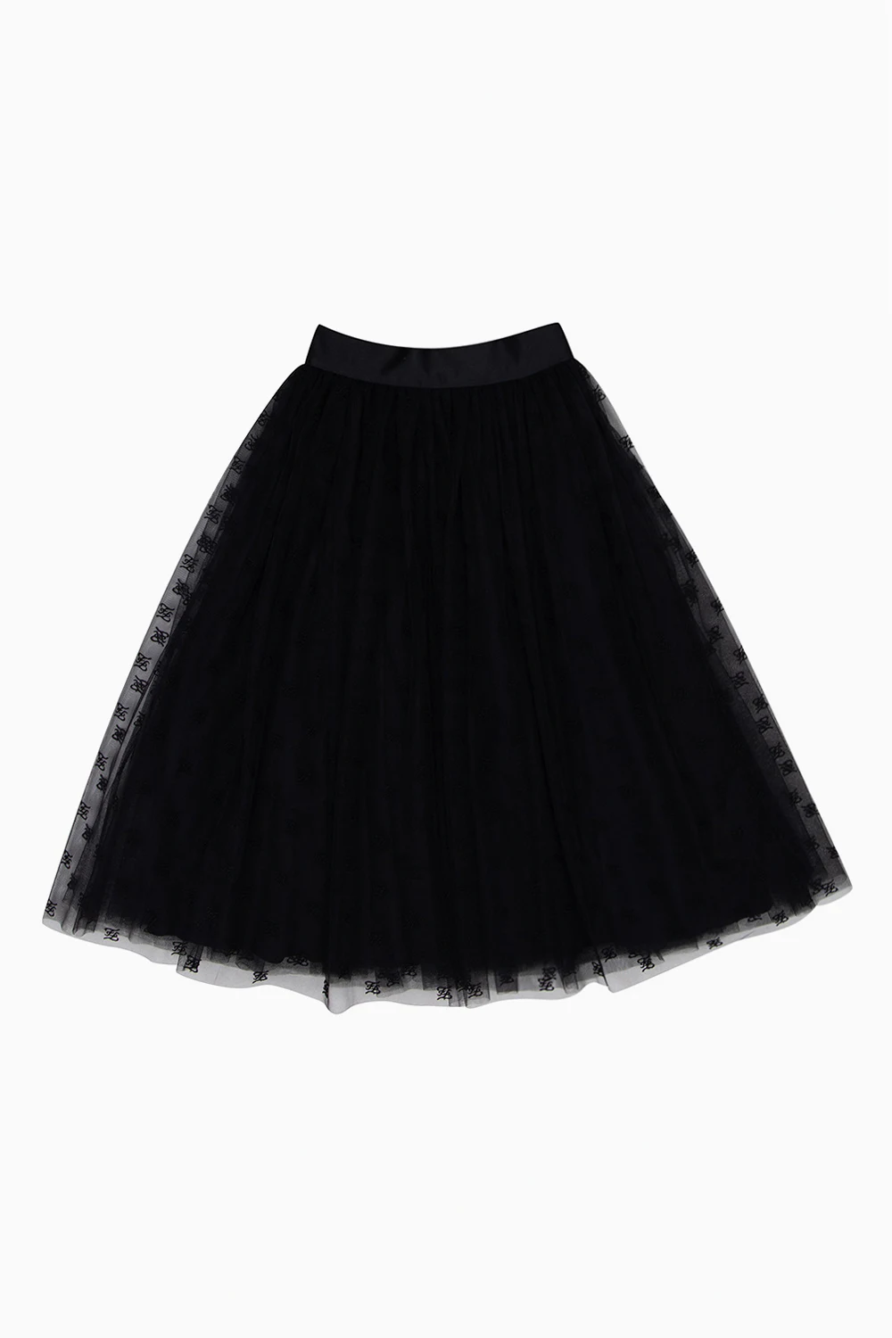 Czarna, tiulowa spódnica Fendi Kids. W pasie wszyta guma. Ozdobiona wyszytym logo.