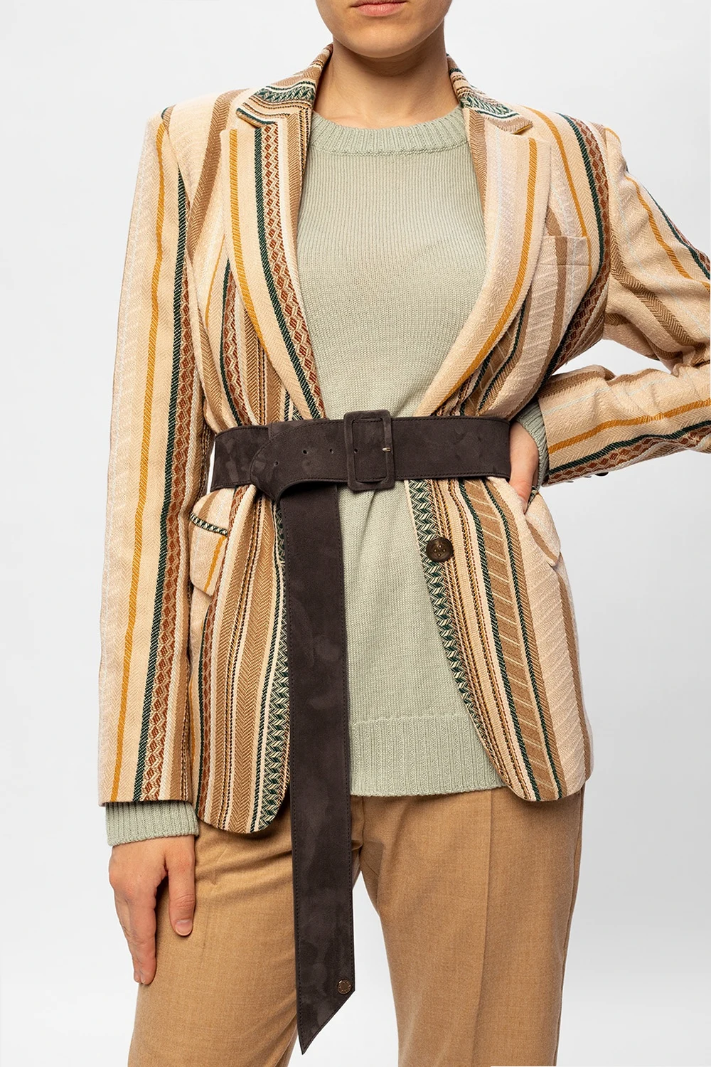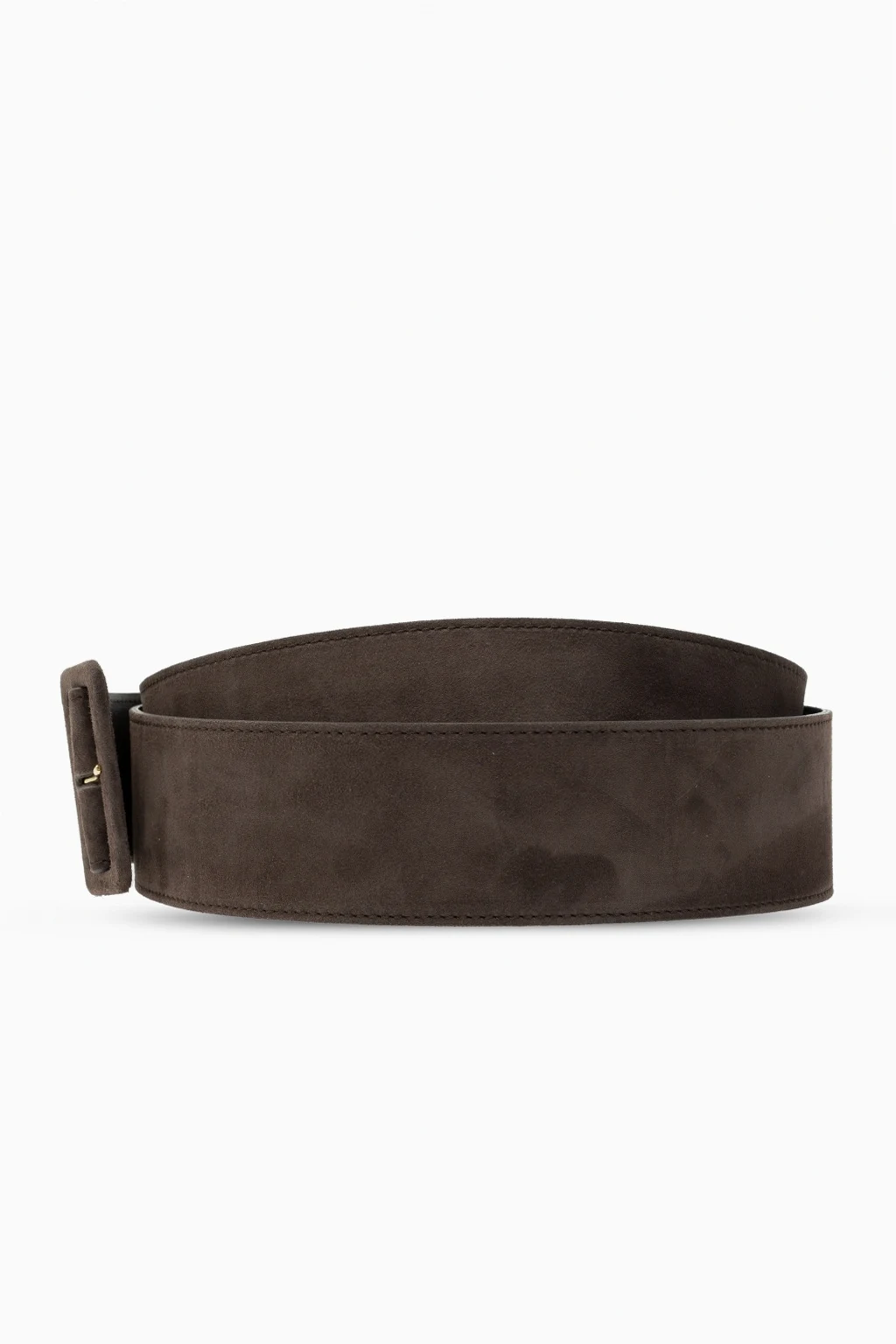Ciemnobrązowy pasek z klamrą Agnona. Wykonany ze skóry oraz zamszu. Metalowe wykończenie w kolorze złotym.