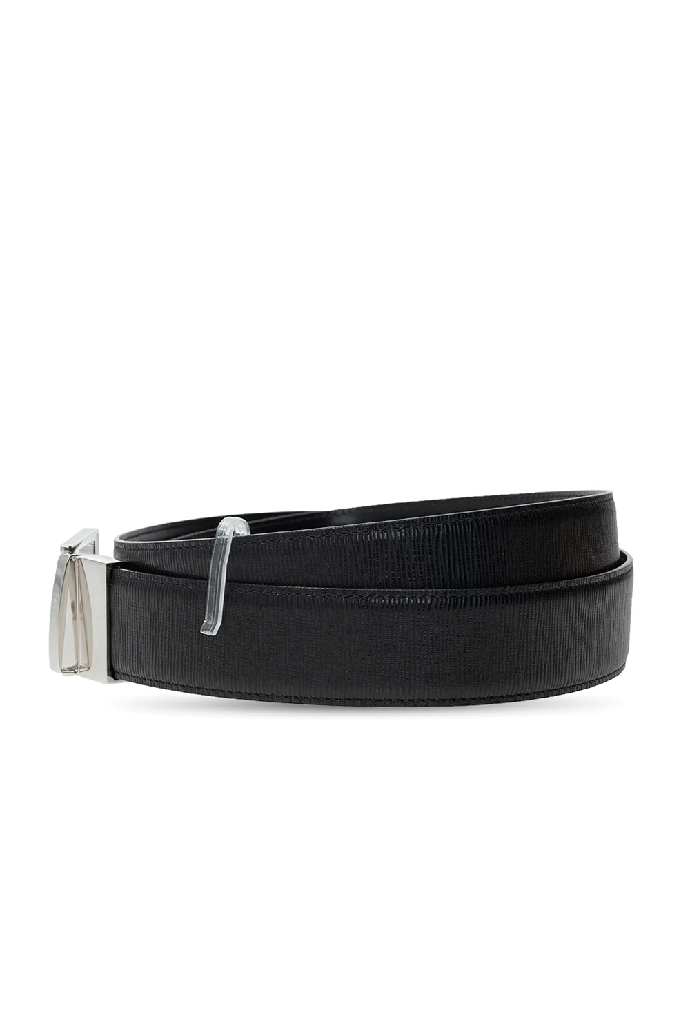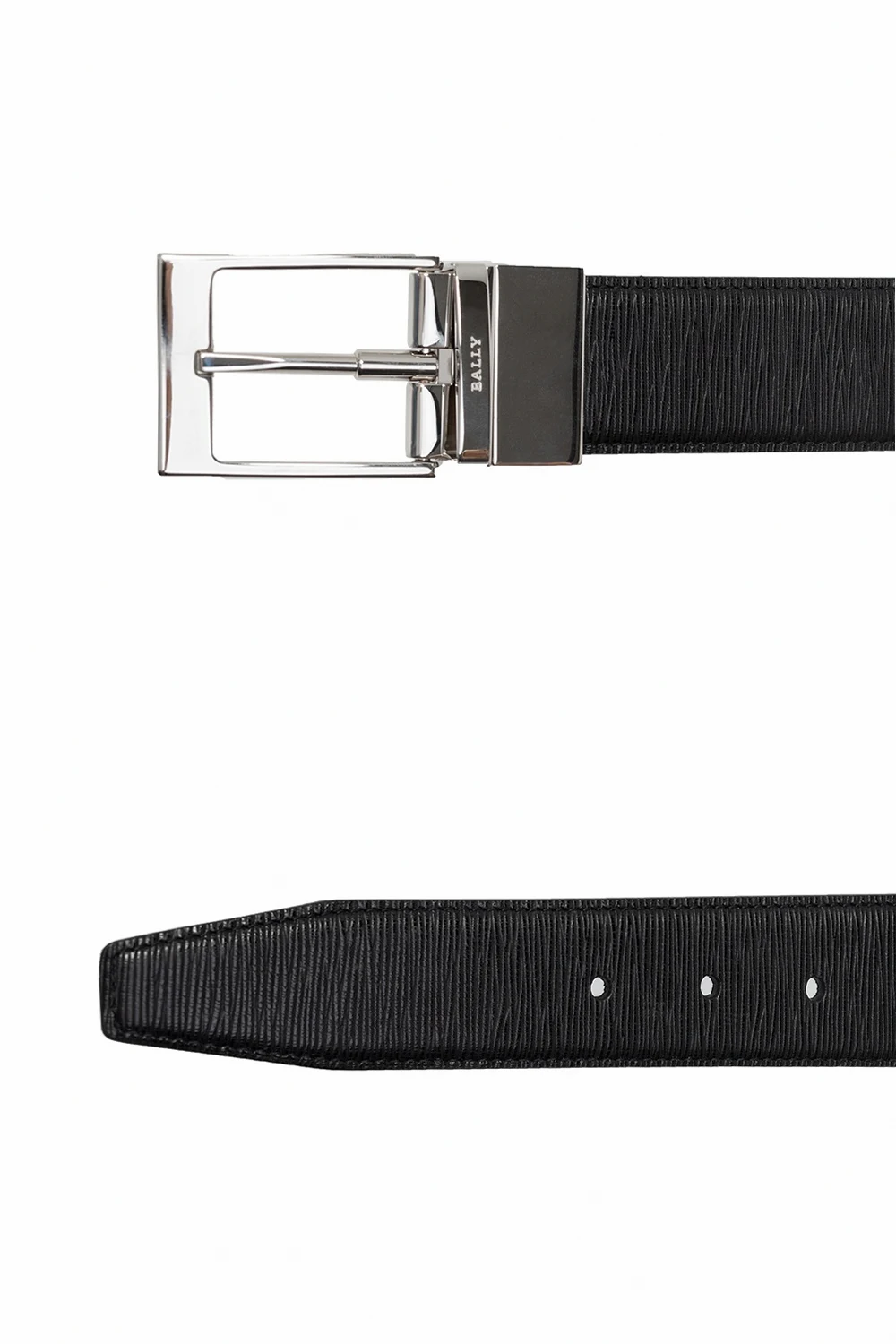 Czarny pasek, model ‘Seret’ Bally. Wykonany ze skóry cielęcej o specjalnej fakturze. Metalowa klamra w kolorze srebrnym ozdobiona wygrawerowanym logo.
