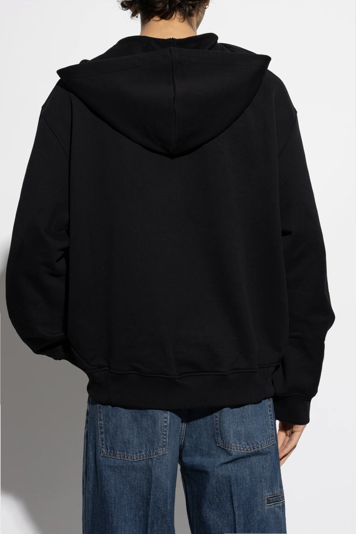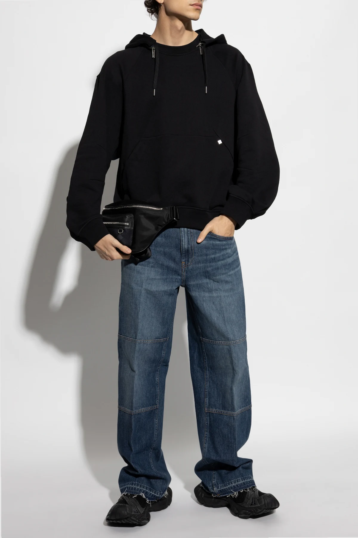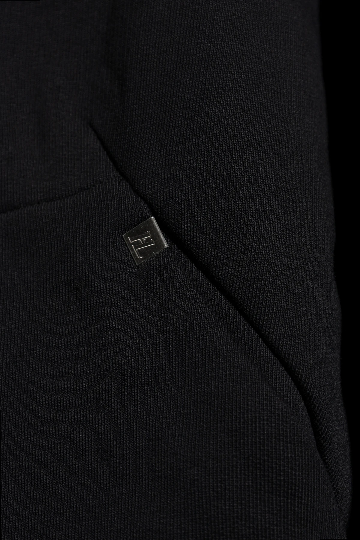 Dzięki swojemu luźnemu krojowi i klasycznemu kapturowi z regulowanymi sznurkami, stanowi idealne połączenie wygody i stylu. Na przodzie znajduje się praktyczna kieszeń typu kangurka , ozdobiona dyskretnym metalowym znaczkiem z logo projektanta, co dodaje jej wyjątkowego charakteru.