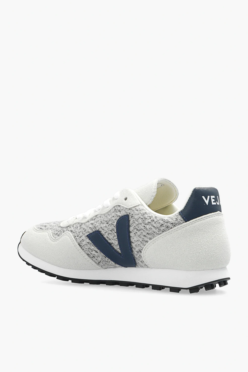 Jasnoszaro-granatowe, sznurowane buty sportowe, model ‘Sud Flannel’ Veja. Wykonane zostały z wegańskiego zamszu oraz flaneli z recyklingu. Na języku wytłoczone logo. Charakterystyczna dla marki naszywka w kolorze granatowym wykonana z gumy oraz odpadów ryżowych. Wnętrze buta wykonane zostało z dżerseju - 33% bawełny organicznej i 67% poliestru z recyklingu. Czarno-biała podeszwa zrobiona jest z gumy pochodzącej z lasu amazońskiego (25%). Buty wyprodukowano w Brazylii, w regionie Porto Alegre. Przy produkcji zwraca się tam uwagę na niskie zużycie wody oraz pozyskiwanie surowców z odpowiedzialnych źródeł.