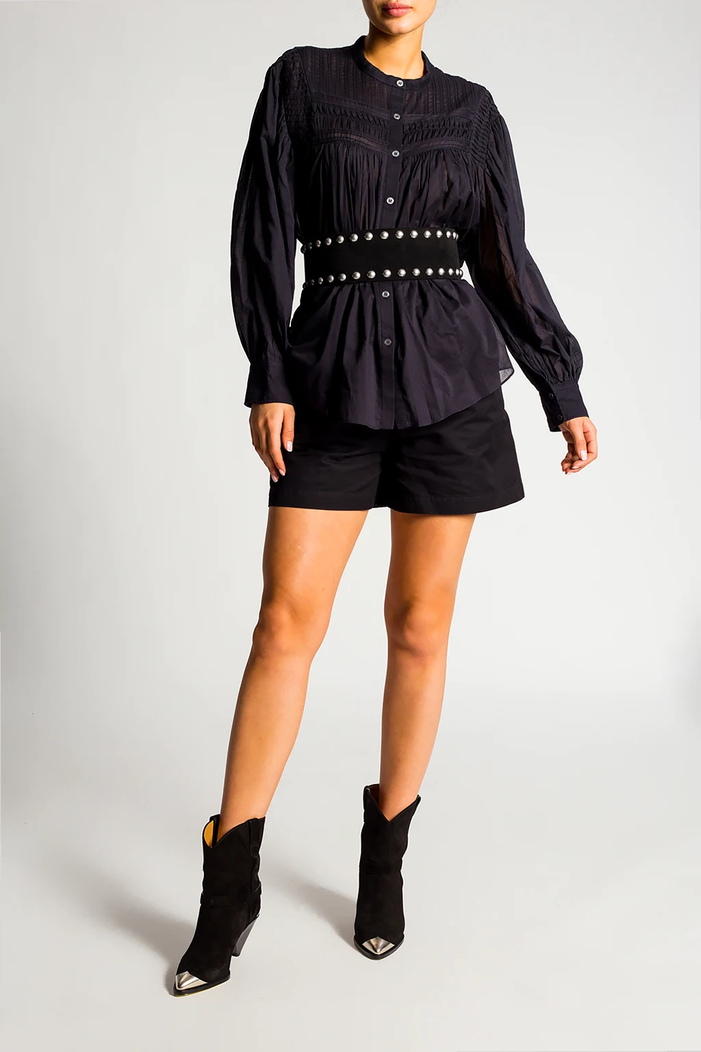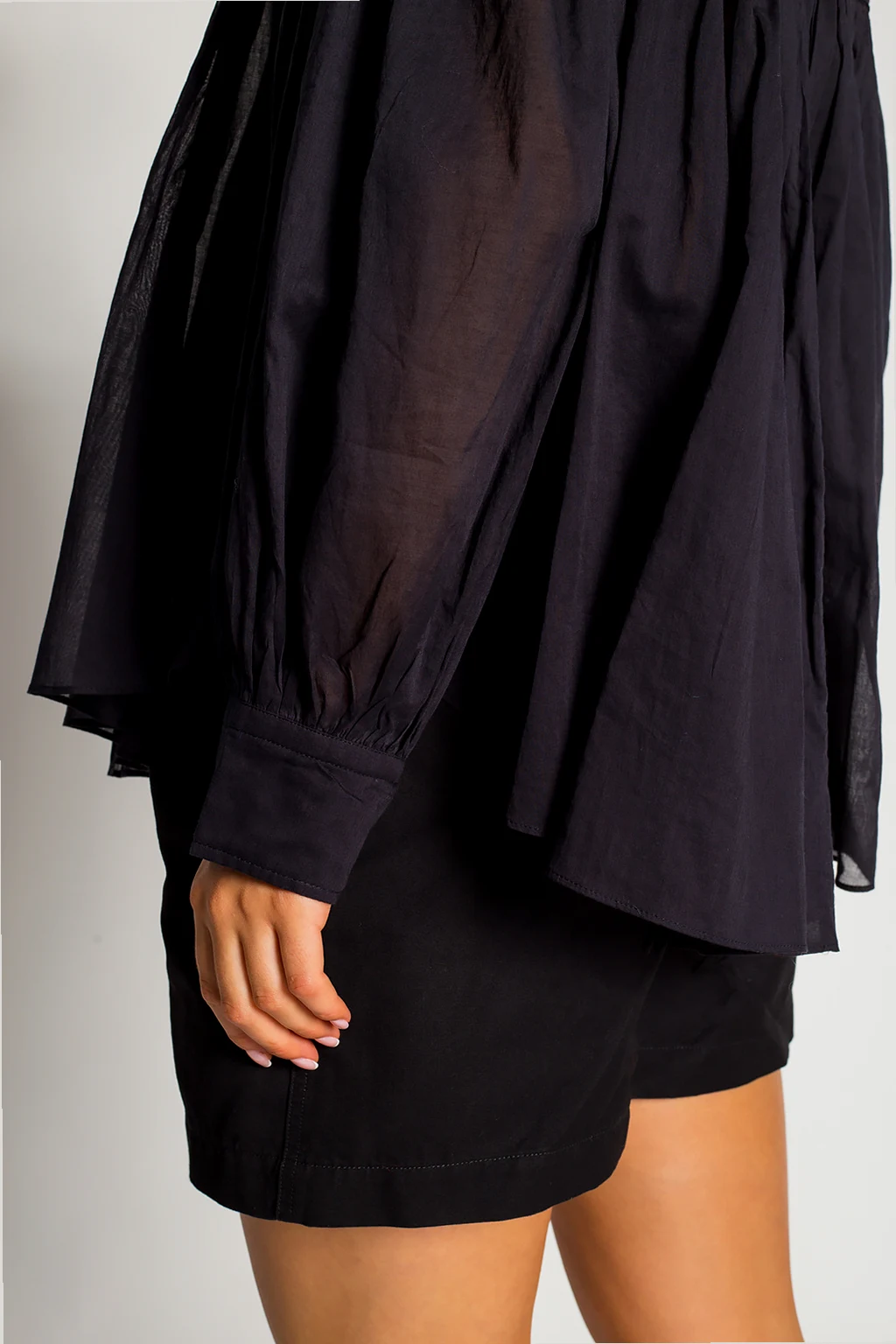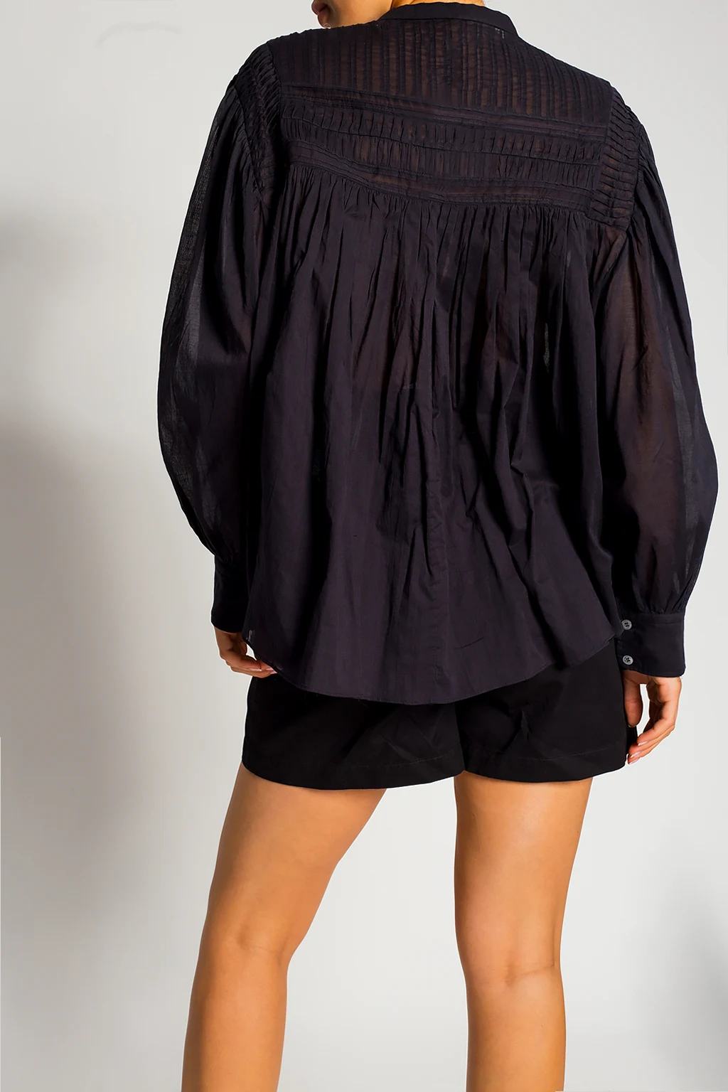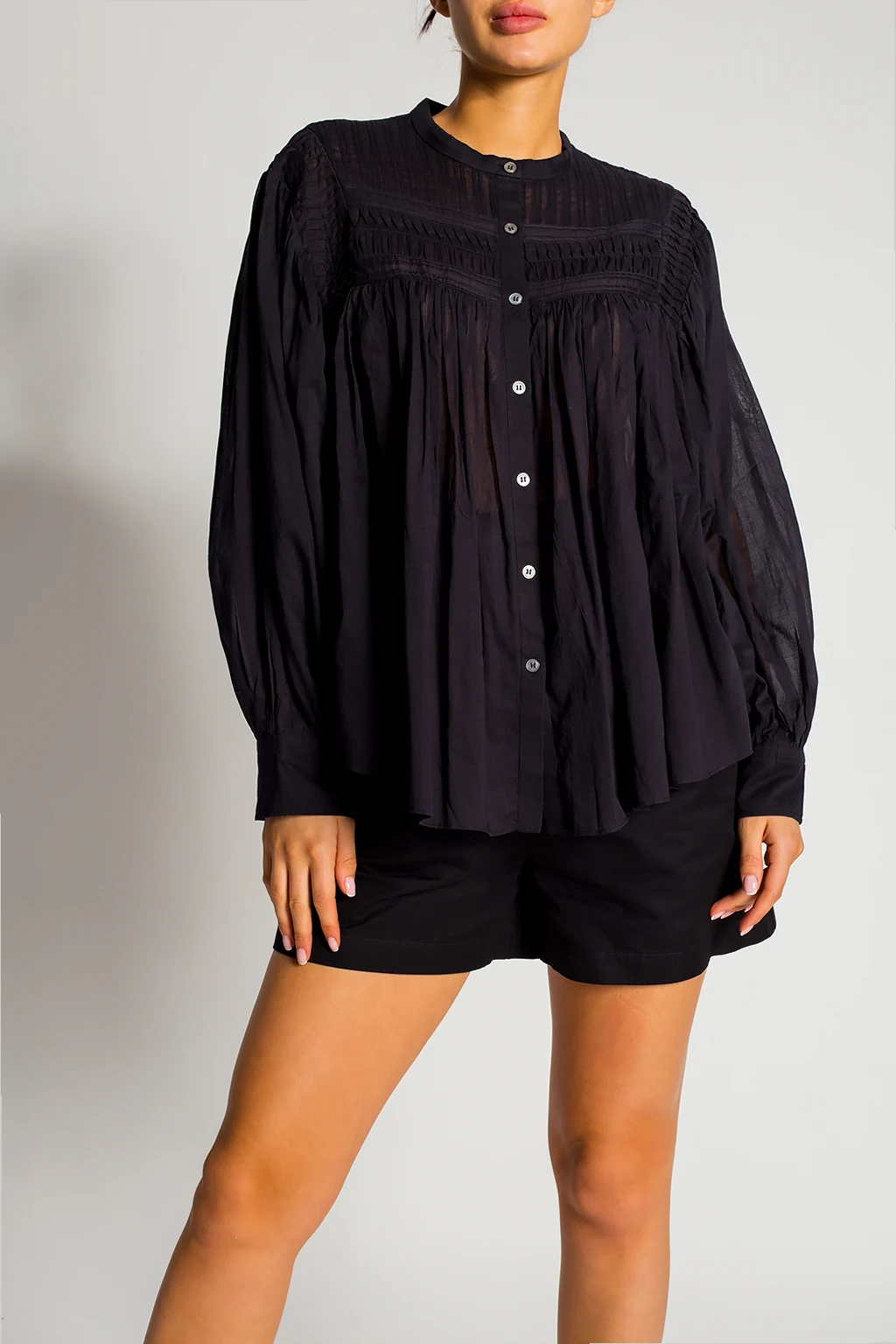 Czarna, bawełniana koszula Isabel Marant Étoile. Zapinana na guziki. Dekoracyjne przeszycia. Długie, bufiaste rękawy zakończone mankietami z zapięciem na guzik.