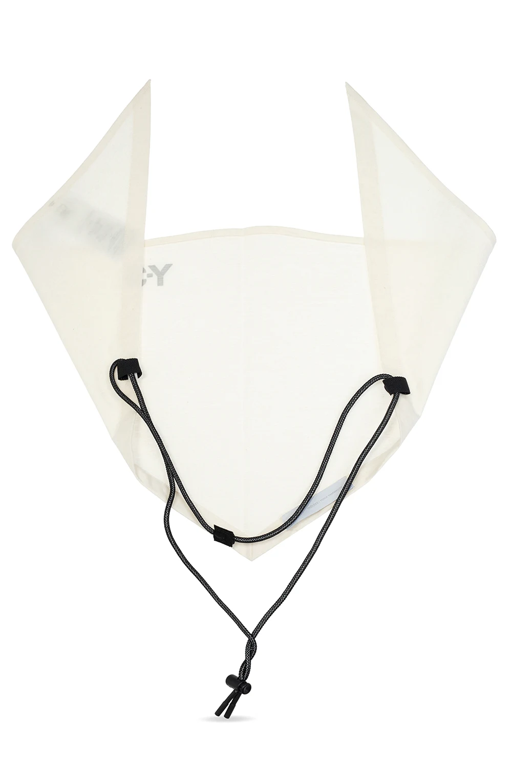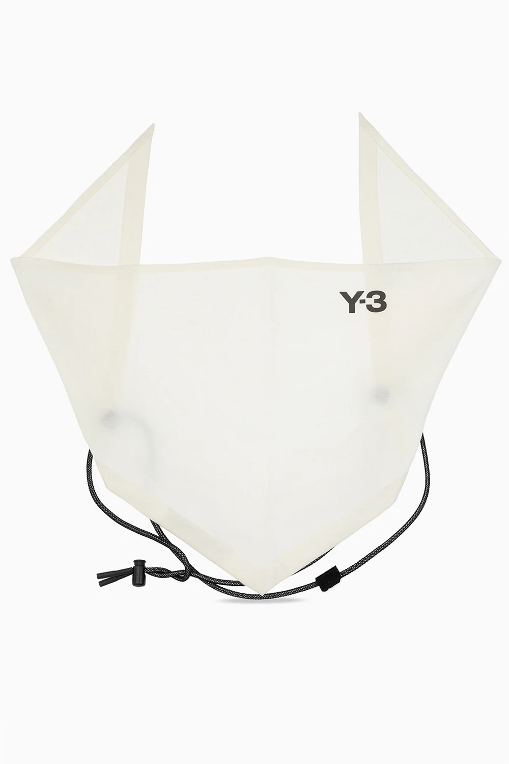 Kremowa bandana Y-3 Yohji Yamamoto. Ściągana trokami. Ozdobiona logo w kolorze szarym.