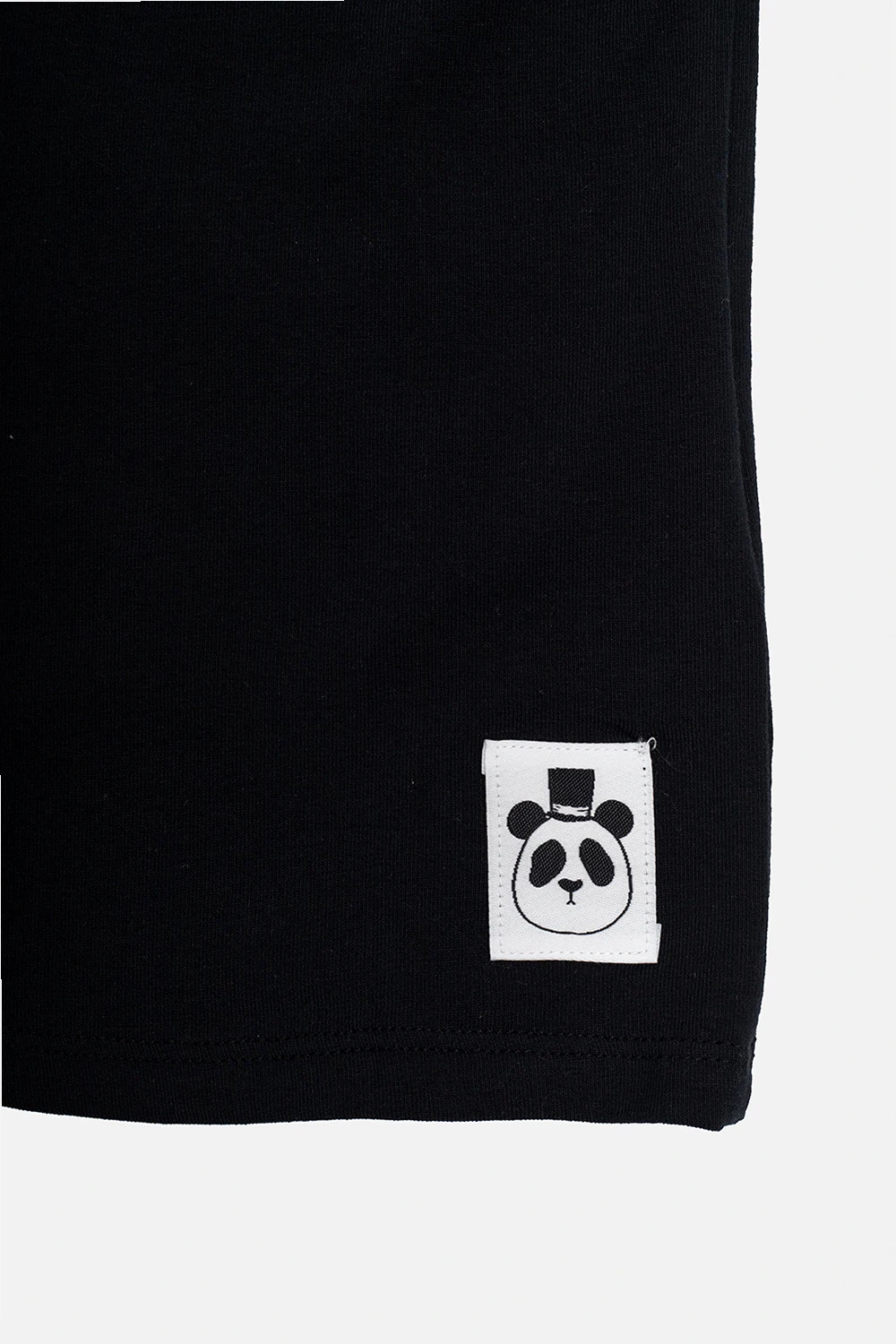 Czarny t-shirt Mini Rodini. Wykonany z miękkiego lyocellu TENCEL™. Z przodu ozdobiony naszywką z logo. Okrągły dekolt. Krótkie rękawy.