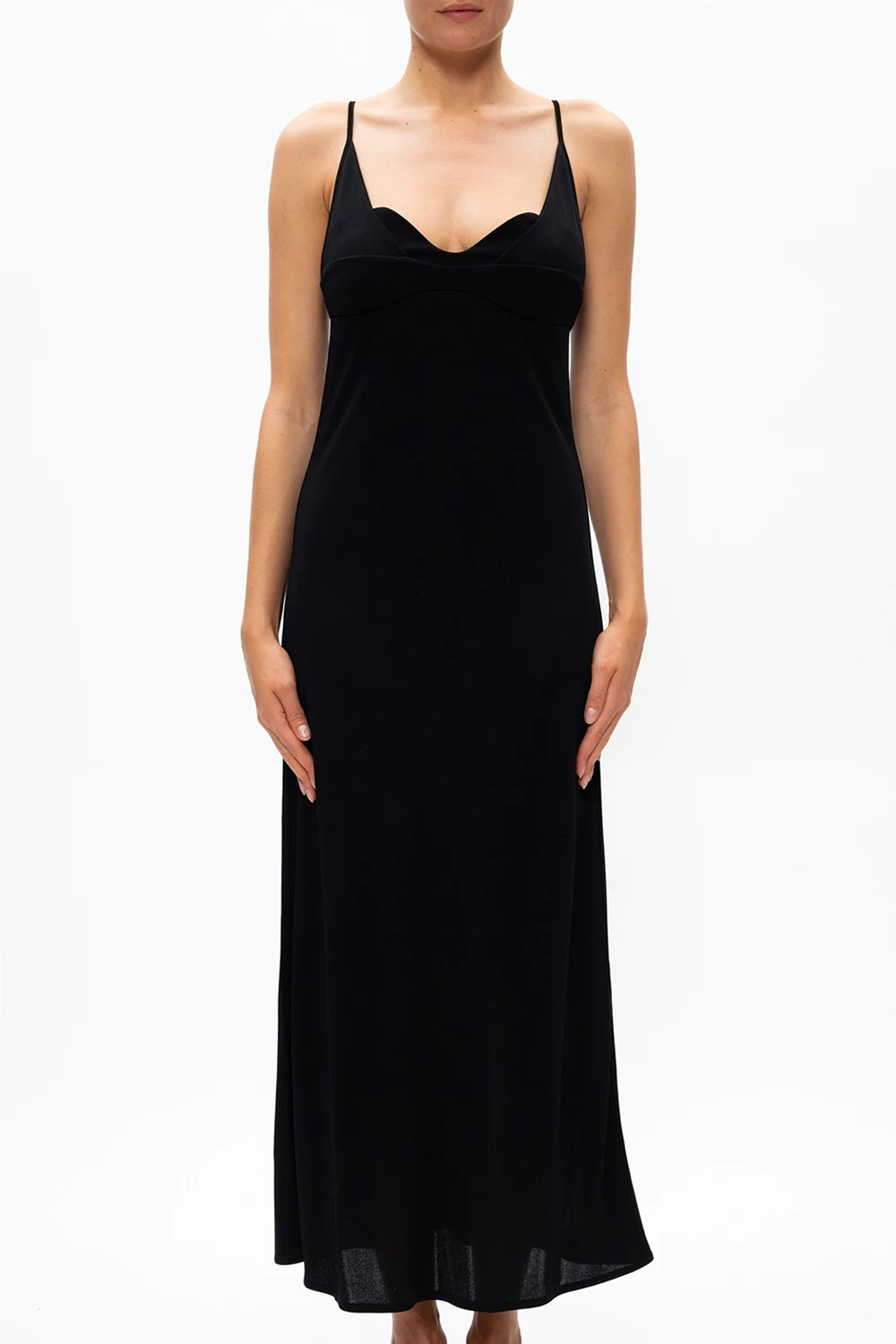 Czarna sukienka na ramiączkach Jil Sander.