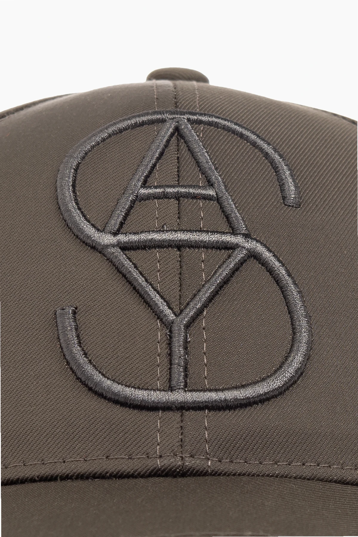 Ciemnozielona czapka z daszkiem Yves Salomon. Zapinana z tyłu na regulowany pasek z klamrą. Z przodu ozdobiona wyszytym logo.