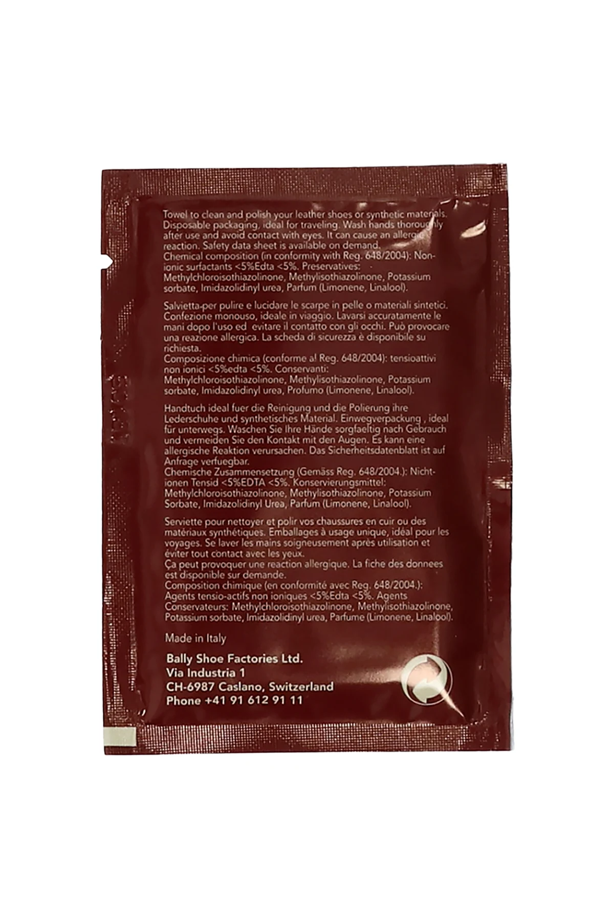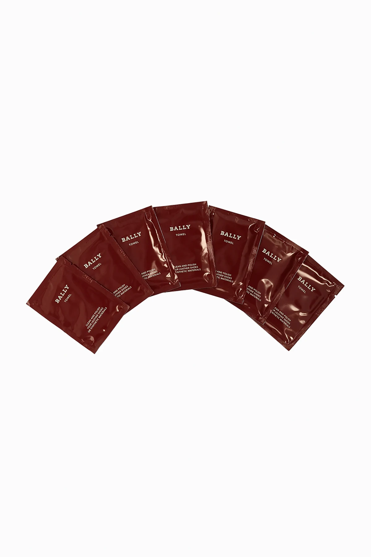 Zestaw dziesięciu ściereczek do czyszczenia obuwia w saszetkach Bally.
