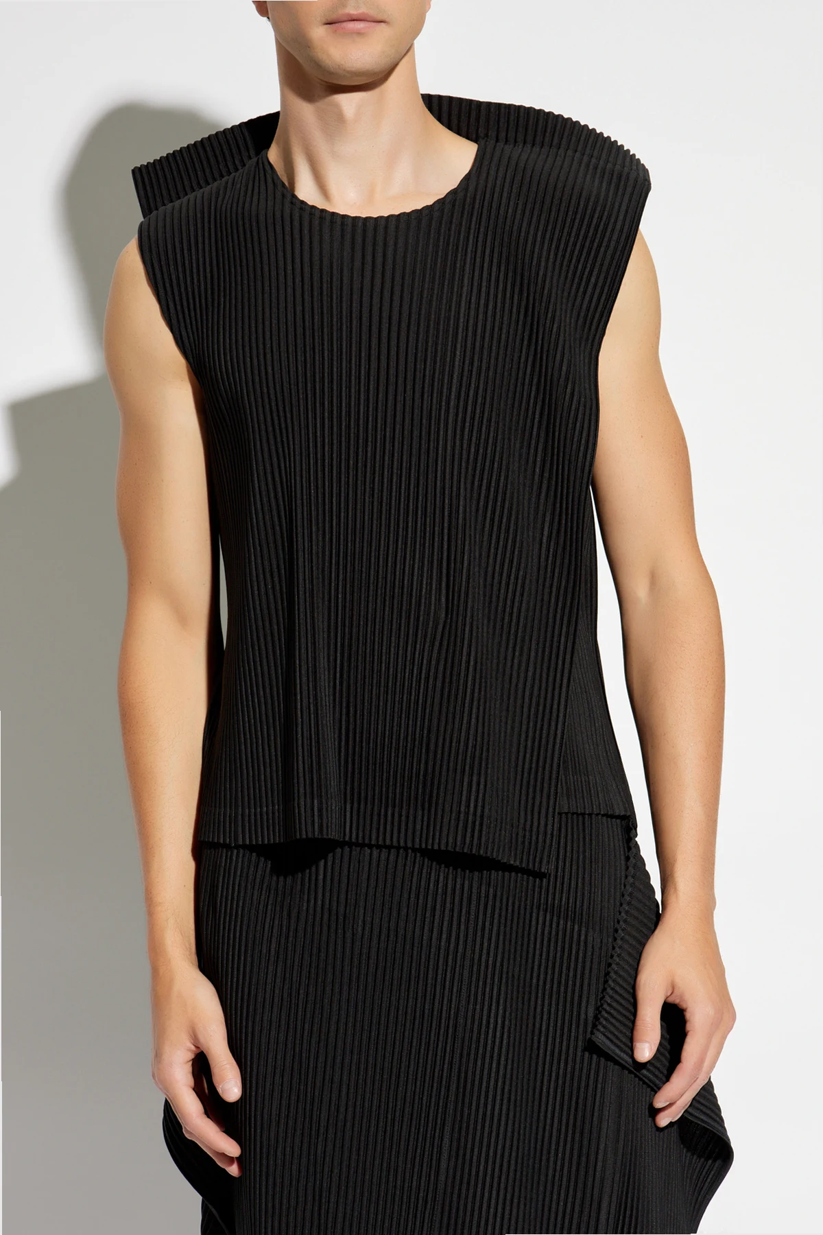Zachwycający w swej prostocie, a zarazem wyrafinowaniu, plisowany top od Homme Plisse Issey Miyake jest kwintesencją elegancji, która uwydatnia klasę bez zbędnych słów. Wykonany z najwyższej jakości poliestru, charakteryzuje się wyjątkową elastycznością, dopasowując się do sylwetki niczym druga skóra, jednocześnie pozostawiając przestrzeń na swobodę ruchów.