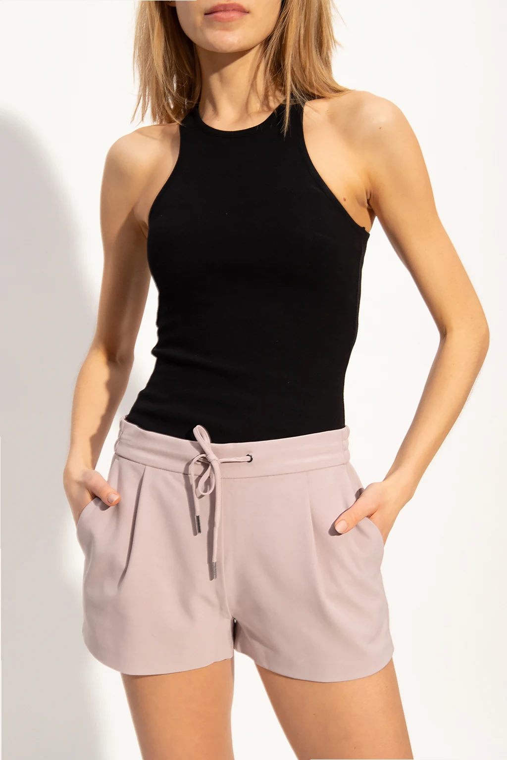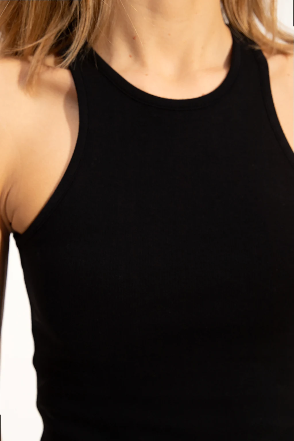 Czarne, prążkowane body bez rękawów, model 'Jamie' AllSaints. Wykonane z bawełny. Zapinane na zatrzaski.