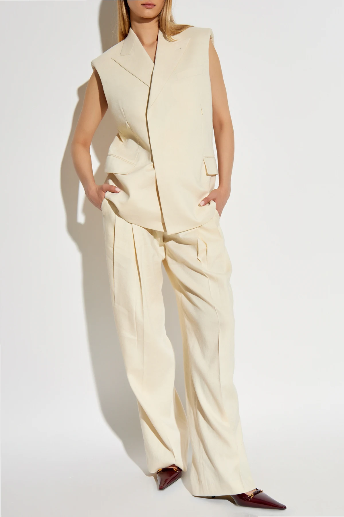 Detale takie jak szerokie nogawki, zaszewki i eleganckie zapinanie podkreślające unikatowość modelu.