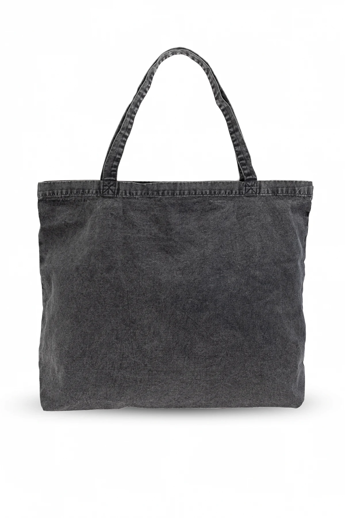 Torba wykonana jest z materiału przypominającego denim lub płótno, co nadaje jej wyjątkową fakturę. Wzmacniane szwy przy rączkach zapewniają trwałość, a minimalistyczny design wnętrza, pozbawiony dodatkowych kieszeni, podkreśla jej prostotę i funkcjonalność.